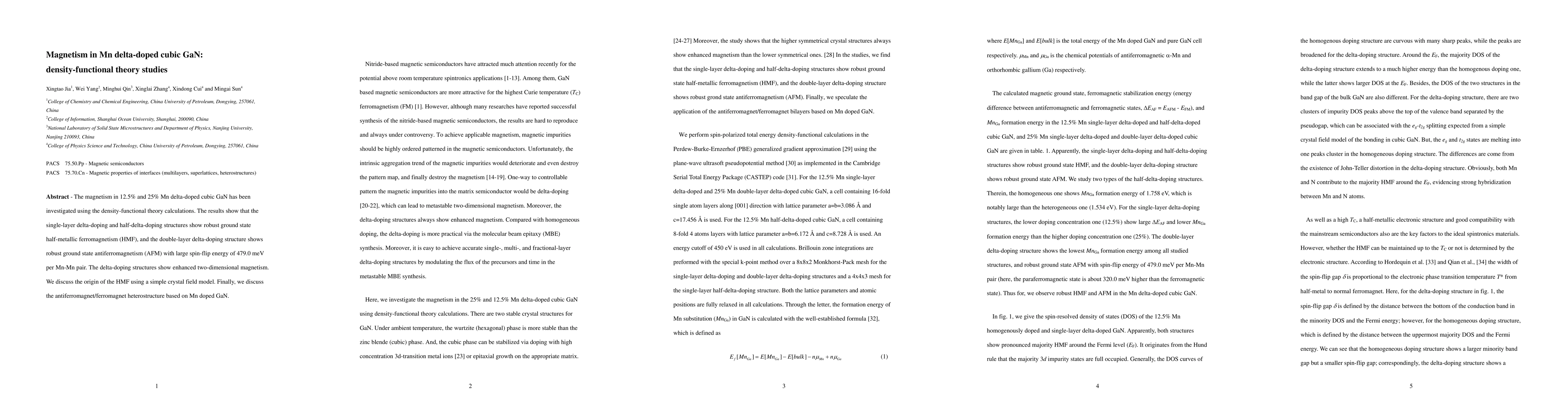 This study investigates the magnetism in Mn delta-doped cubic GaN using density-functional theory, revealing robust half-metallic ferromagnetism in single-layer and half-delta-doping structures, while double-layer delta-doping exhibits antiferromagnetism with significant spin-flip energy.