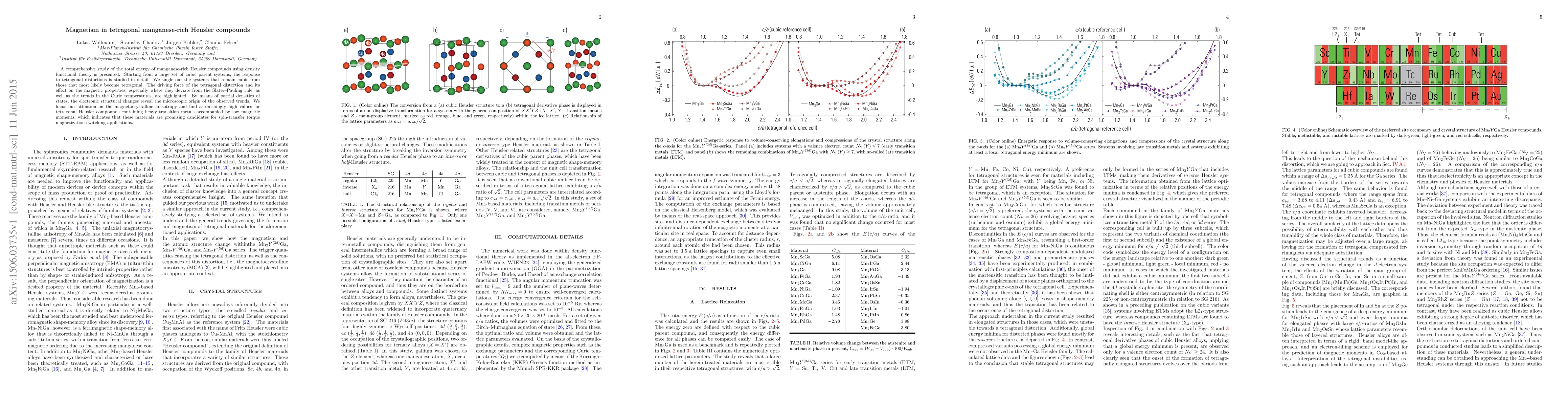 A comprehensive study of the total energy of manganese-rich Heusler compounds using density functional theory is presented. Starting from a large set of cubic parent systems, the response to tetragonal distortions is studied in detail. We single out the systems that remain cubic from those that most likely become tetragonal. The driving force of the tetragonal distortion and its effect on the magnetic properties, especially where they deviate from the Slater--Pauling rule, as well as the trends in the Curie temperatures, are highlighted. By means of partial densities of states, the electronic structural changes reveal the microscopic origin of the observed trends. We focus our attention on the magnetocrystalline anisotropy and find astonishingly high values for tetragonal Heusler compounds containing heavy transition metals accompanied by low magnetic moments, which indicates that these materials are promising candidates for spin-transfer torque magnetization-switching applications.