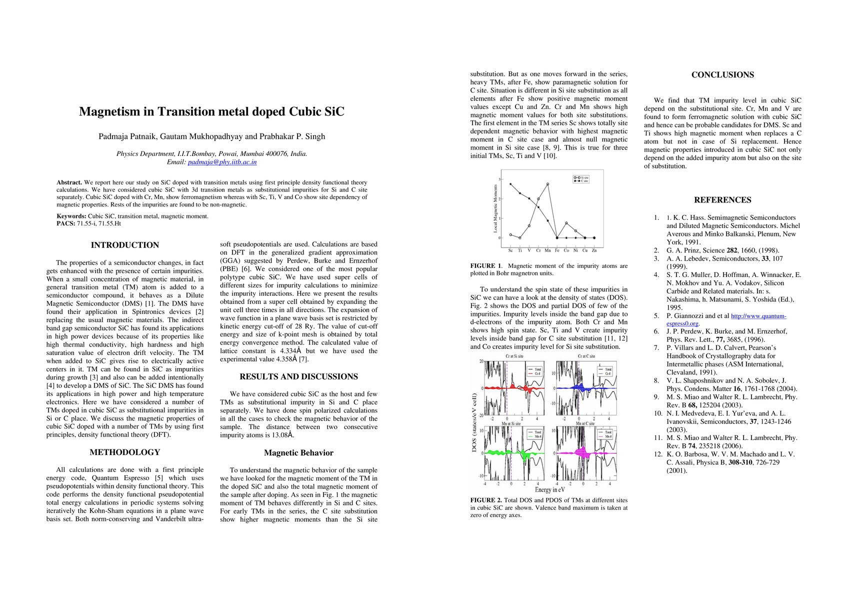 Research finds that certain transition metals when doped into cubic silicon carbide (SiC) exhibit ferromagnetism, while others show site-dependent magnetic properties or remain non-magnetic.
