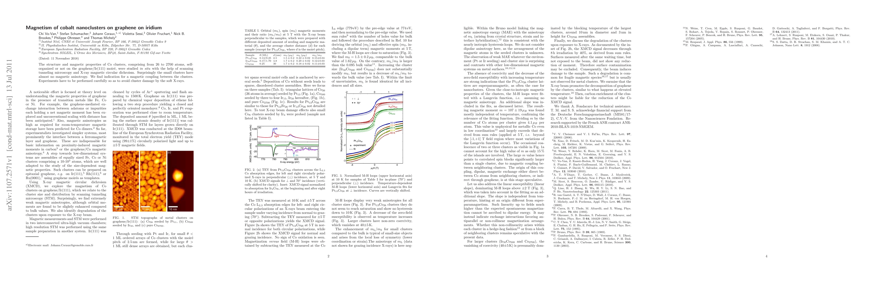 The structure and magnetic properties of Co clusters, comprising from 26 to 2700 atoms, self-organized or not on the graphene/Ir(111) moir\'e, were studied in situ with the help of scanning tunneling microscopy and X-ray magnetic circular dichroism. Surprisingly the small clusters have almost no magnetic anisotropy. We find indication for a magnetic coupling between the clusters. Experiments have to be performed carefully so as to avoid cluster damage by the soft X-rays.