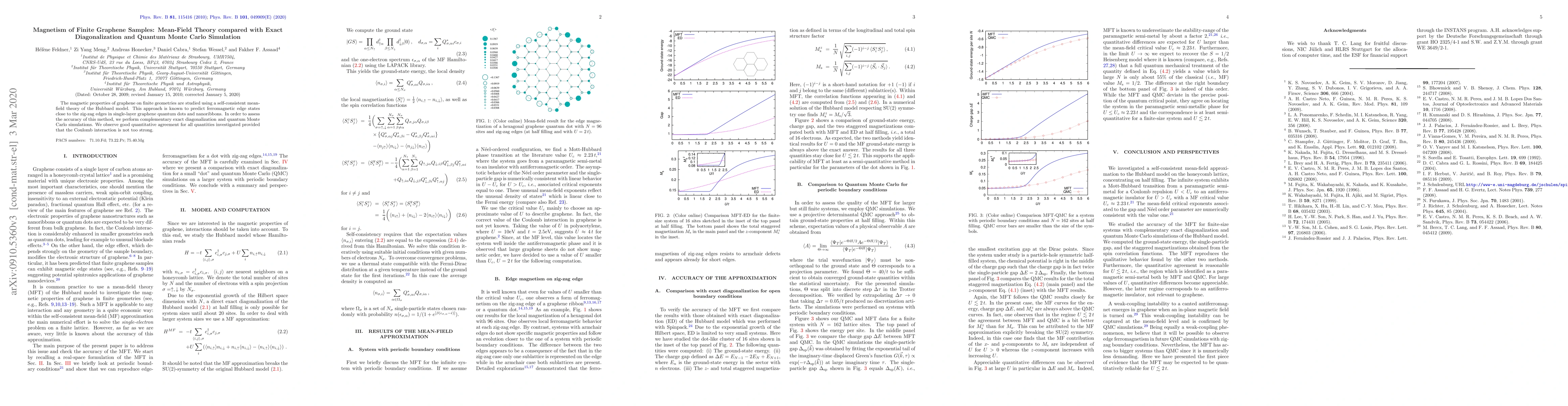 This paper investigates the magnetic properties of finite graphene samples using a mean-field theory of the Hubbard model, predicting ferromagnetic edge states near zig-zag edges. It validates the mean-field approach through exact diagonalization and quantum Monte Carlo simulations, finding good quantitative agreement under moderate Coulomb interaction.