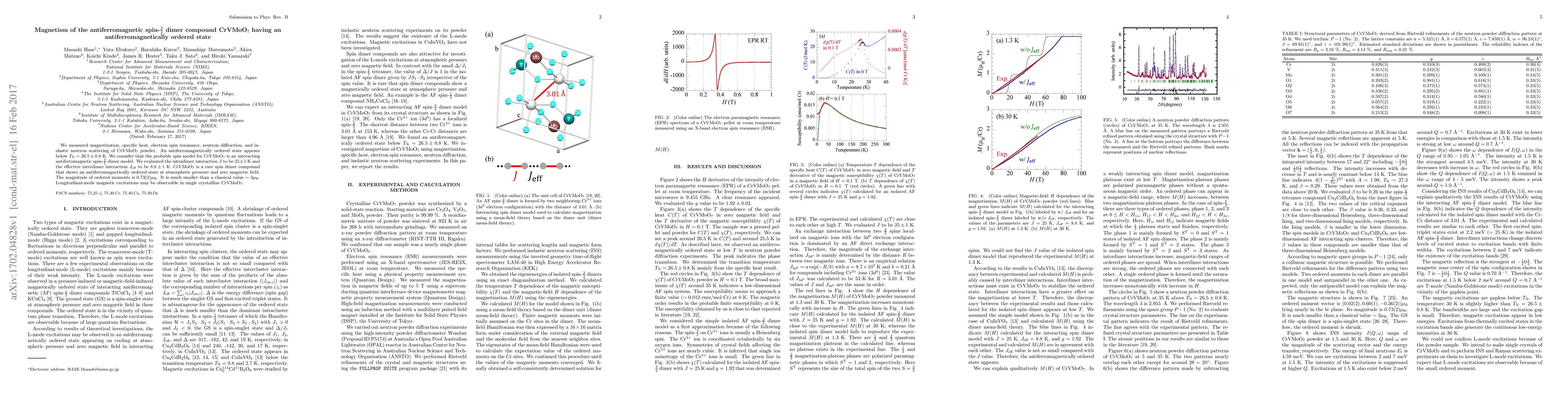 Researchers studied CrVMoO$_7$, a rare spin dimer compound that exhibits an antiferromagnetically ordered state at low temperatures, with magnetic properties similar to those of classical magnets but much smaller.