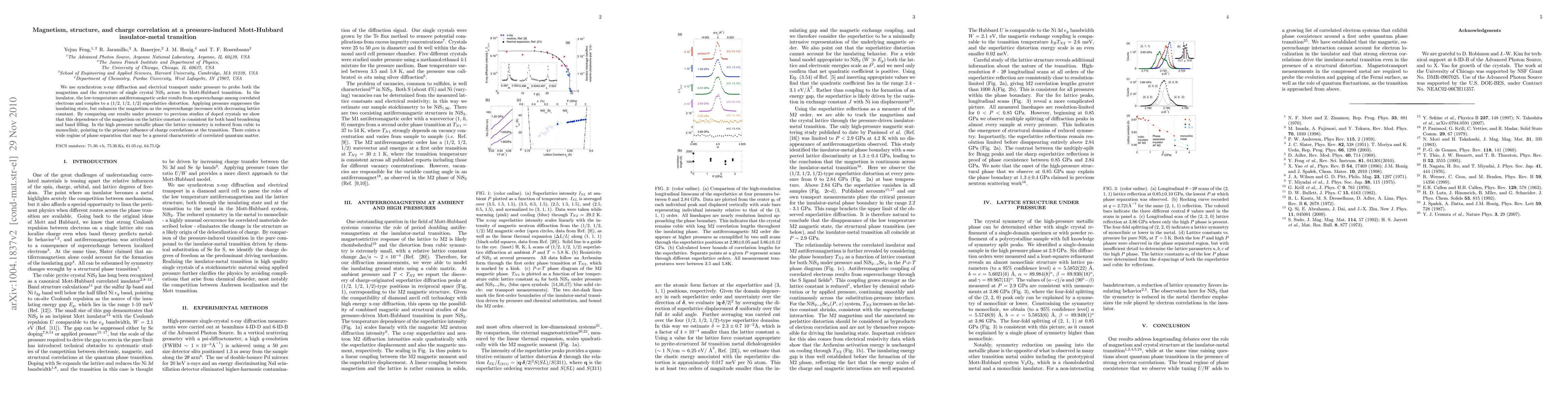 This study investigates the magnetism and structure of NiS2 across its pressure-induced Mott-Hubbard insulator-metal transition using synchrotron x-ray diffraction and electrical transport. The low-temperature antiferromagnetic order in the insulator is linked to superexchange and a superlattice distortion, which is enhanced by pressure despite suppressing the insulating state.