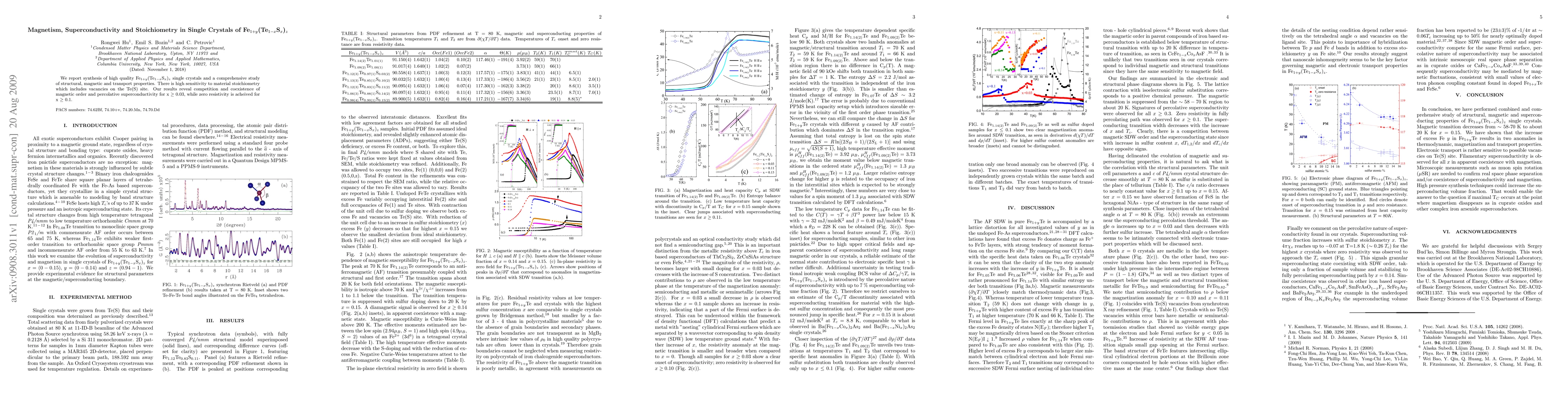 This paper synthesizes high-quality Fe1+y(Te1-xSx)z single crystals and investigates their structural, magnetic, and transport properties, revealing that stoichiometry significantly influences both magnetism and superconductivity, with coexistence of both phenomena for sulfur content x >= 0.03 and zero resistivity achieved for x >= 0.1.