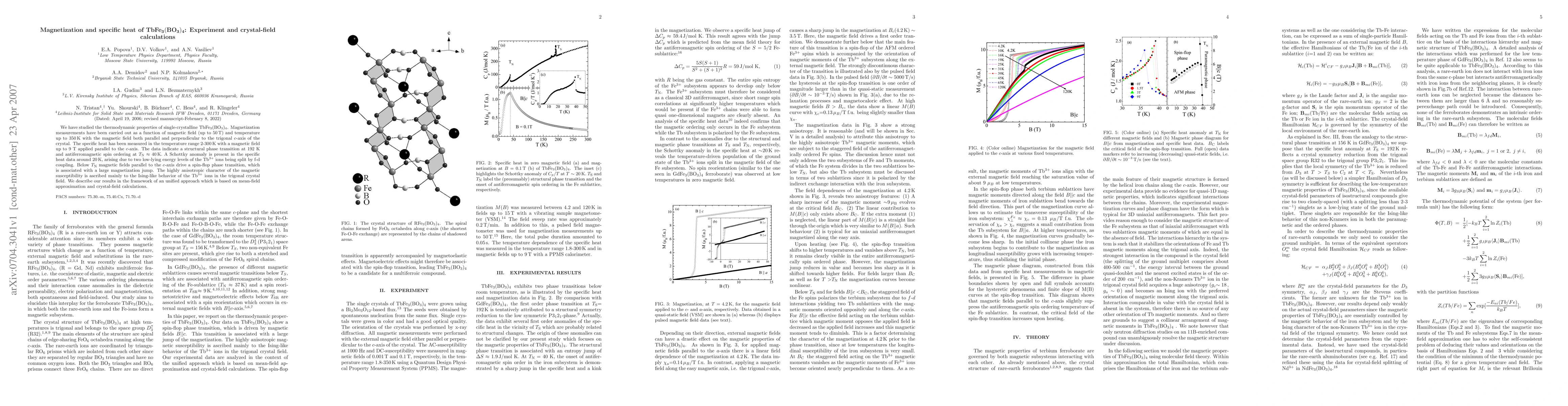 Researchers studied the thermodynamic properties of TbFe3(BO3)4, a material that undergoes structural and magnetic phase transitions at specific temperatures, with key findings including a large magnetization jump driven by magnetic fields.