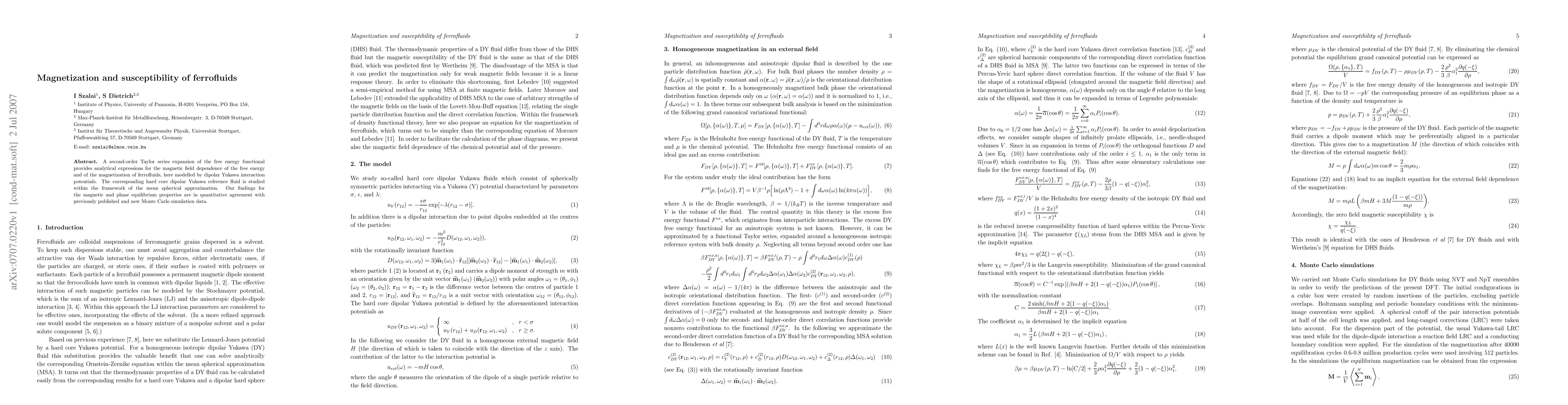 This paper derives analytical expressions for ferrofluid magnetization and susceptibility using a second-order Taylor series expansion and mean spherical approximation. The results align quantitatively with both existing Monte Carlo simulation data and new findings.