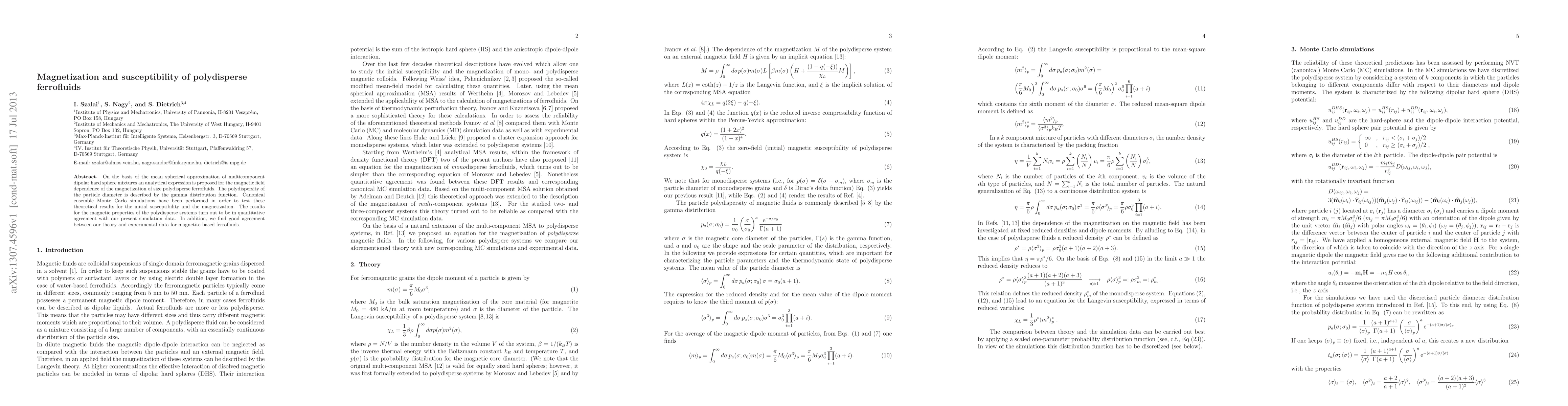 This paper proposes an analytical expression for the magnetization of polydisperse ferrofluids based on the mean spherical approximation, validated by Monte Carlo simulations and experimental data. The theoretical results align well with both simulation and experimental measurements for magnetite-based ferrofluids.
