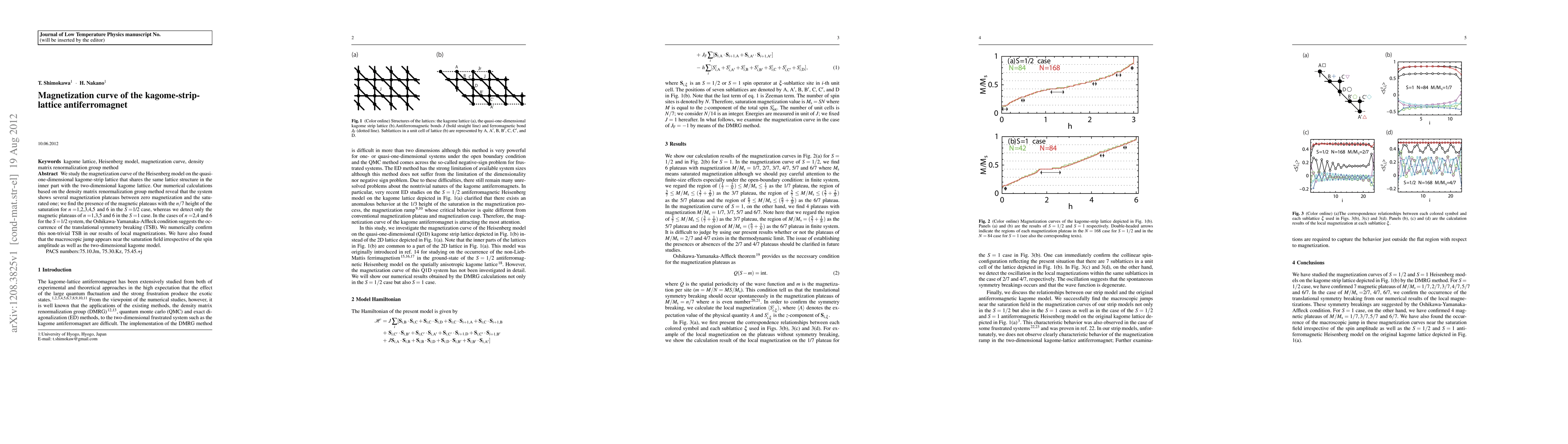 This study investigates the magnetization curve of the Heisenberg model on the quasi-one-dimensional kagome-strip lattice using numerical density matrix renormalization group methods. The research reveals multiple magnetization plateaus and identifies translational symmetry breaking in certain spin cases, with notable differences observed between S=1/2 and S=1 systems.
