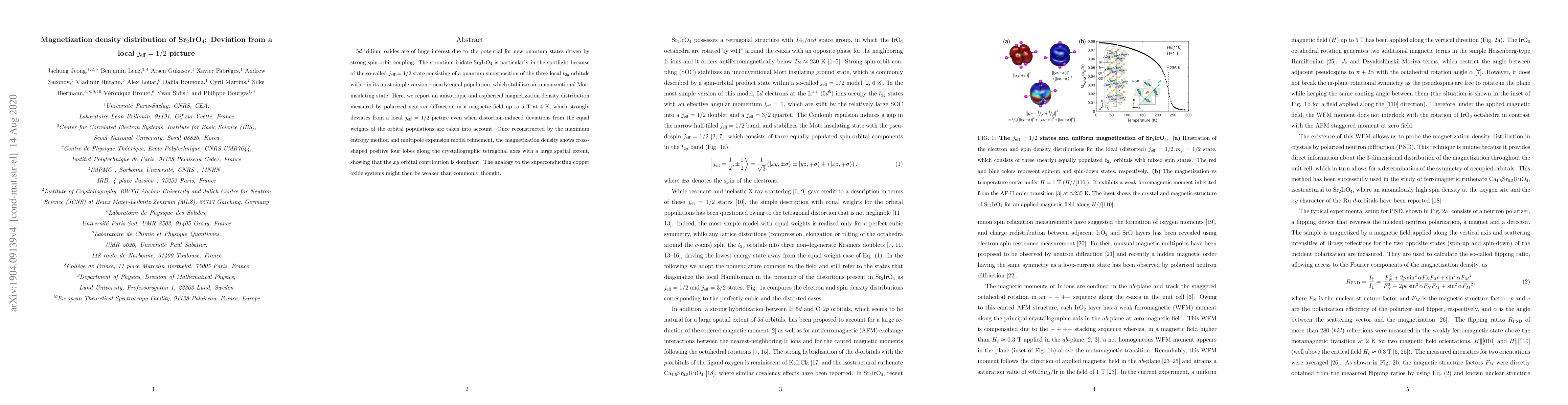 $5d$ iridium oxides are of huge interest due to the potential for new quantum states driven by strong spin-orbit coupling. The strontium iridate Sr$_2$IrO$_4$ is particularly in the spotlight because of the so-called $j_\text{eff}=1/2$ state consisting of a quantum superposition of the three local $t_{2g}$ orbitals with -- in its most simple version -- nearly equal population, which stabilizes an unconventional Mott insulating state. Here, we report an anisotropic and aspherical magnetization density distribution measured by polarized neutron diffraction in a magnetic field up to 5~T at 4~K, which strongly deviates from a local \jeffHalf picture even when distortion-induced deviations from the equal weights of the orbital populations are taken into account. Once reconstructed by the maximum entropy method and multipole expansion model refinement, the magnetization density shows cross-shaped positive four lobes along the crystallographic tetragonal axes with a large spatial extent, showing that the $xy$ orbital contribution is dominant. The analogy to the superconducting copper oxide systems might then be weaker than commonly thought.