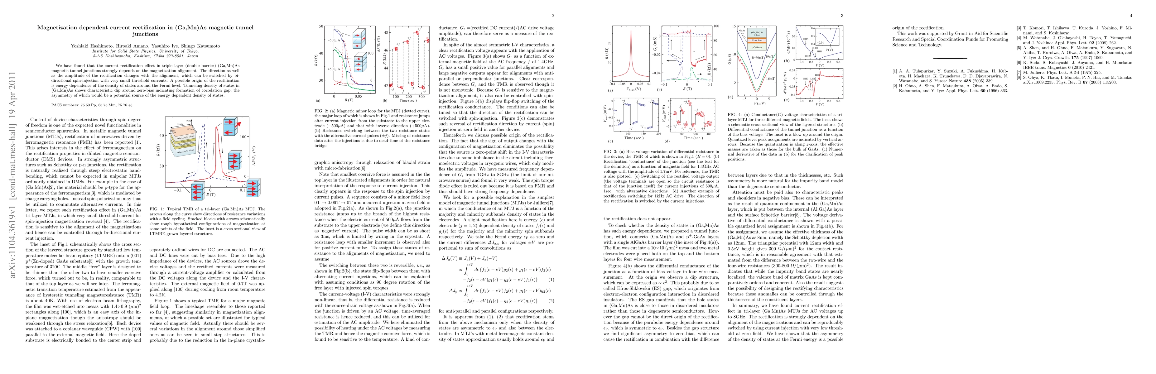 This study reveals that current rectification in (Ga,Mn)As magnetic tunnel junctions is significantly influenced by magnetization alignment, with both direction and amplitude of rectification switchable via small threshold currents. The observed rectification is likely due to the energy-dependent density of states, particularly the asymmetry of the correlation gap near the Fermi level.