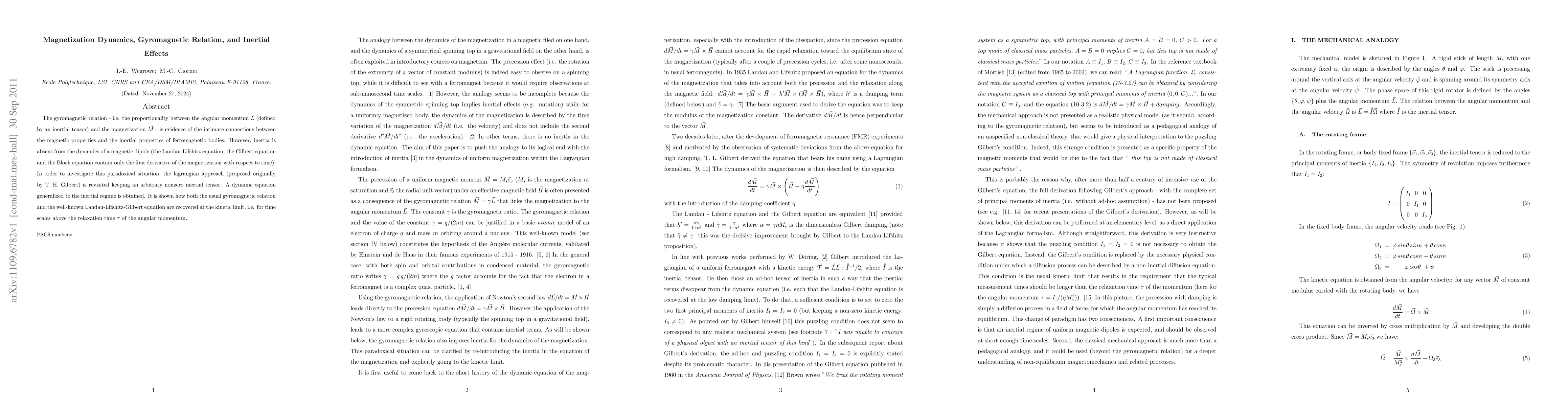This paper revisits the gyromagnetic relation in ferromagnetic bodies, revealing the connection between magnetic properties and inertial properties. It proposes a generalized dynamic equation incorporating inertia, showing how traditional gyromagnetic and Landau-Lifshitz-Gilbert equations emerge under kinetic limits.