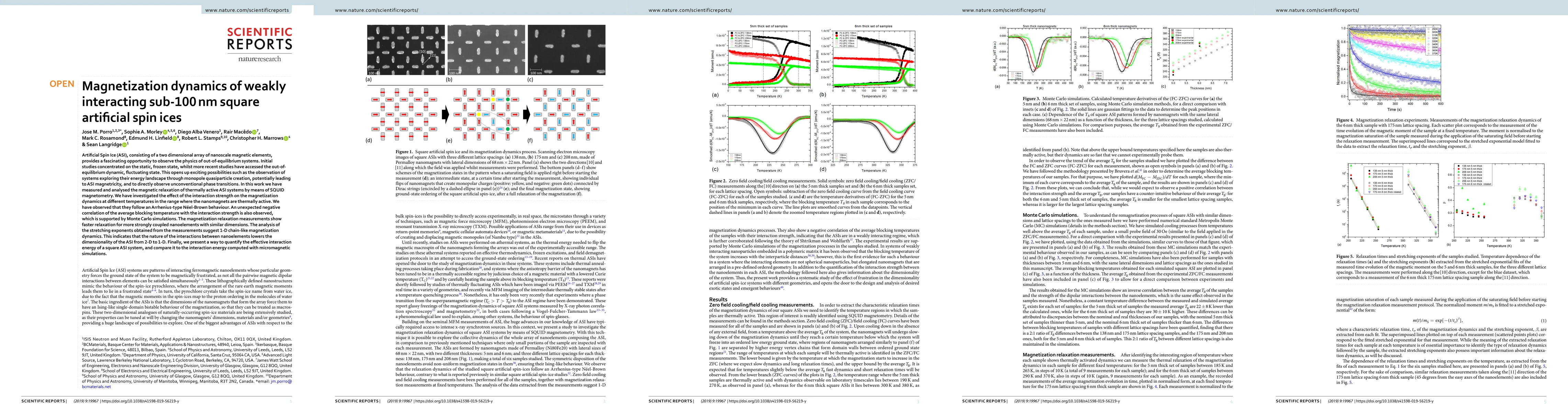 Artificial Spin Ice (ASI), consisting of a two dimensional array of nanoscale magnetic elements, provides a fascinating opportunity to observe the physics of out of equilibrium systems. Initial studies concentrated on the static, frozen state, whilst more recent studies have accessed the out-of-equilibrium dynamic, fluctuating state. This opens up exciting possibilities such as the observation of systems exploring their energy landscape through monopole quasiparticle creation, potentially leading to ASI magnetricity, and to directly observe unconventional phase transitions. In this work we have measured and analysed the magnetic relaxation of thermally active ASI systems by means of SQUID magnetometry. We have investigated the effect of the interaction strength on the magnetization dynamics at different temperatures in the range where the nanomagnets are thermally active and have observed that they follow an Arrhenius-type N\'eel-Brown behaviour. An unexpected negative correlation of the average blocking temperature with the interaction strength is also observed, which is supported by Monte Carlo simulations. The magnetization relaxation measurements show faster relaxation for more strongly coupled nanoelements with similar dimensions. The analysis of the stretching exponents obtained from the measurements suggest 1-D chain-like magnetization dynamics. This indicates that the nature of the interactions between nanoelements lowers the dimensionality of the ASI from 2-D to 1-D. Finally, we present a way to quantify the effective interaction energy of a square ASI system, and compare it to the interaction energy calculated from a simple dipole model and also to the magnetostatic energy computed with micromagnetic simulations.
