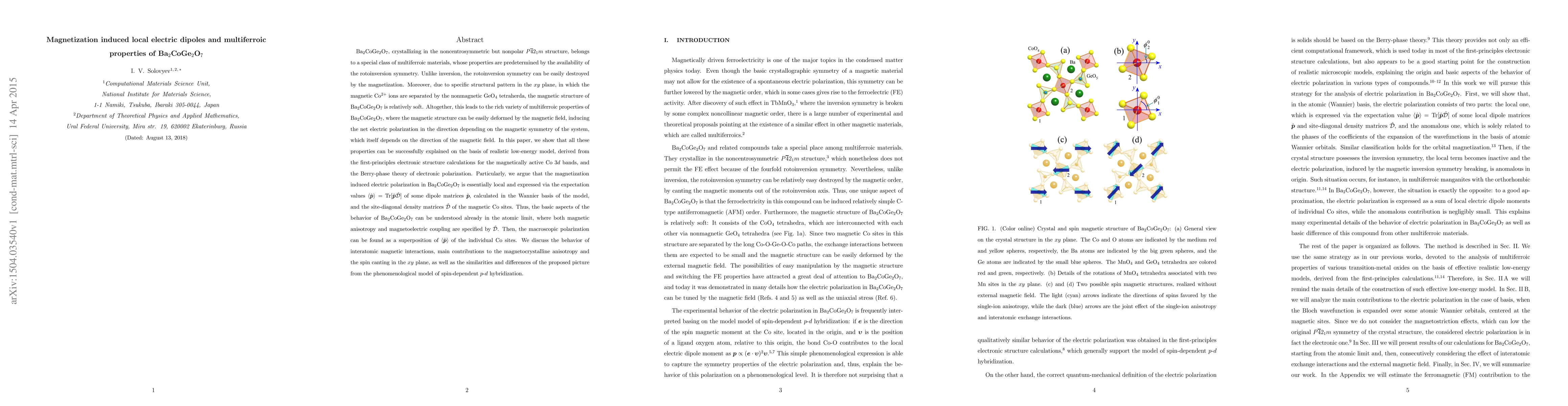 This paper explains how magnetization in Ba2CoGe2O7 creates local electric dipoles with properties dependent on the magnetic field direction, and provides a model to understand its multiferroic behavior.