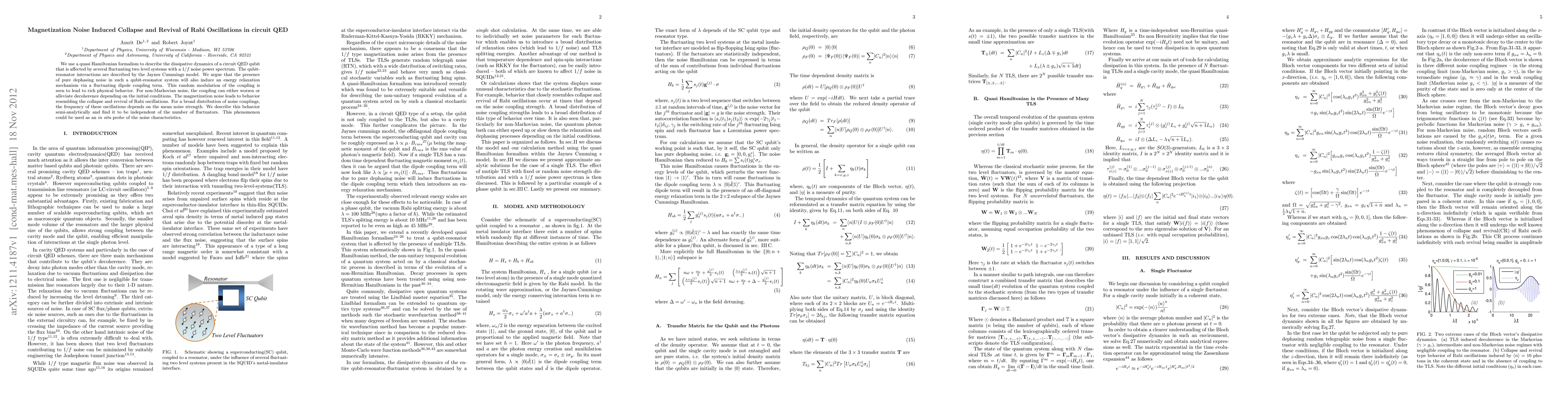 This paper investigates the impact of magnetization noise on Rabi oscillations in a circuit QED system, showing that it can induce both collapse and revival of oscillations due to fluctuating dipole coupling. The study uses a quasi-Hamiltonian formalism and finds that the frequency of these oscillations depends on the mean noise strength, providing a potential method for probing noise characteristics.