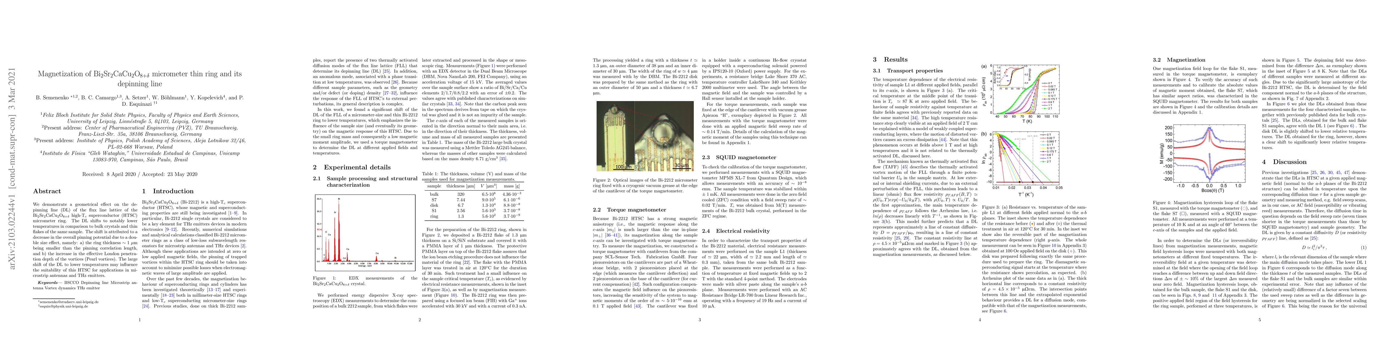 This study investigates the magnetization of a micrometer-thin ring of Bi$_{2}$Sr$_{2}$CaCu$_{2}$O$_{8+\delta}$ high-temperature superconductor, finding that its depinning line shifts to lower temperatures compared to bulk samples. This shift is due to a reduced pinning potential from a smaller ring thickness and increased effective London penetration depth of vortices.