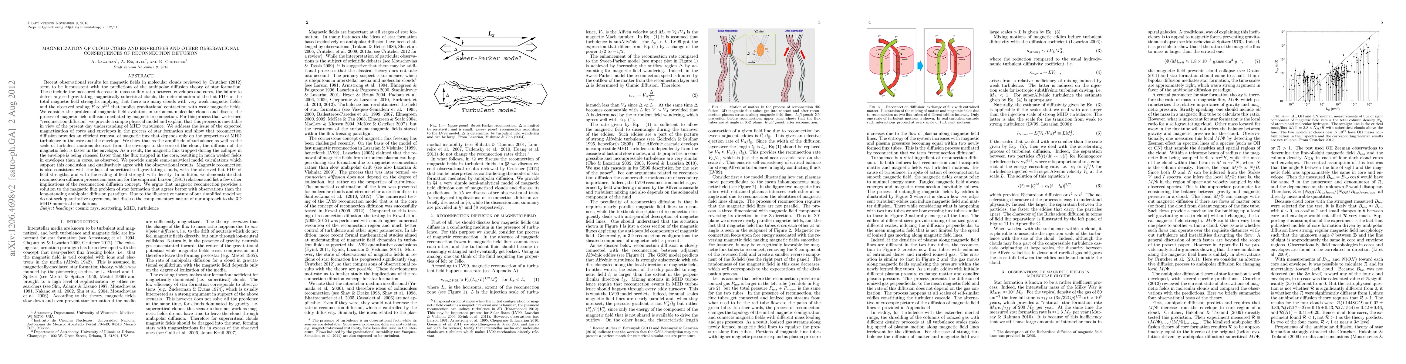 This paper discusses the inconsistency between observational results of magnetic fields in molecular clouds and predictions from ambipolar diffusion theory. It proposes "reconnection diffusion" as a more effective process for magnetic field evolution, explaining how it leads to weaker magnetic fields in envelopes compared to cores, thus better aligning with observational data.