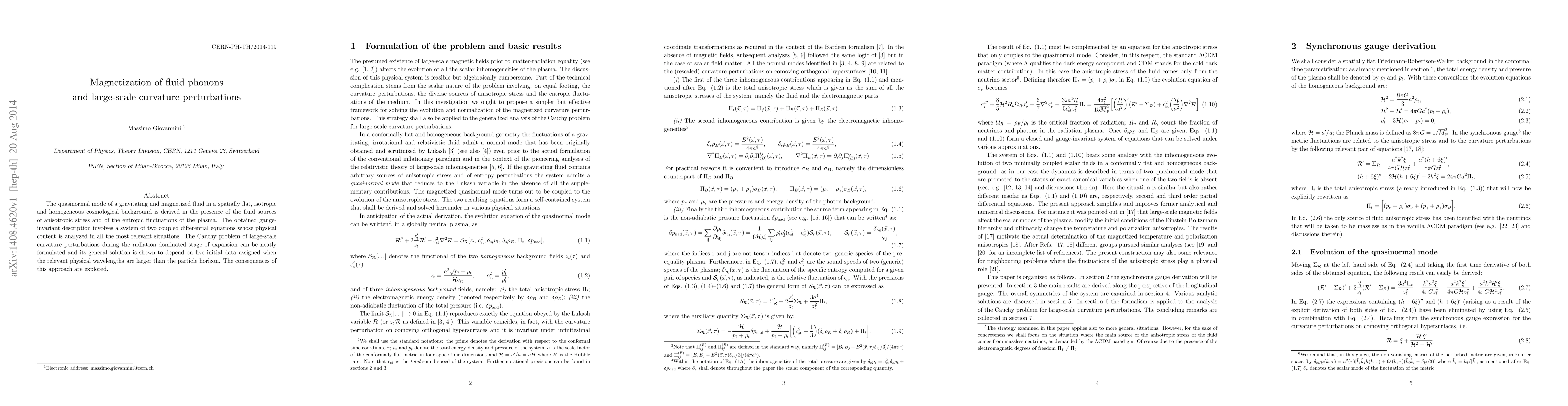 The quasinormal mode of a gravitating and magnetized fluid in a spatially flat, isotropic and homogeneous cosmological background is derived in the presence of the fluid sources of anisotropic stress and of the entropic fluctuations of the plasma. The obtained gauge-invariant description involves a system of two coupled differential equations whose physical content is analyzed in all the most relevant situations. The Cauchy problem of large-scale curvature perturbations during the radiation dominated stage of expansion can be neatly formulated and its general solution is shown to depend on five initial data assigned when the relevant physical wavelengths are larger than the particle horizon. The consequences of this approach are explored.