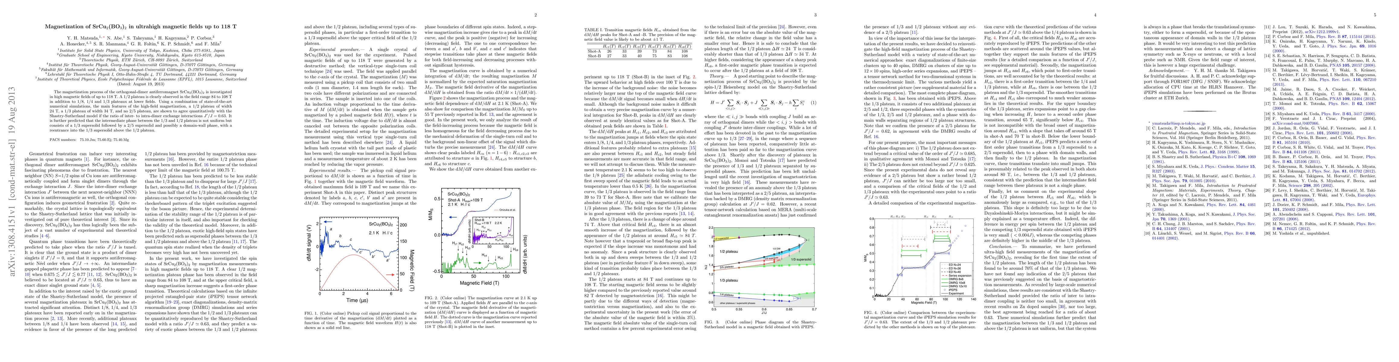 Researchers studied SrCu2(BO3)2 in high magnetic fields up to 118 T, finding a unique magnetization pattern with multiple plateaus, which agree with the Shastry-Sutherland model for a specific exchange interaction ratio.
