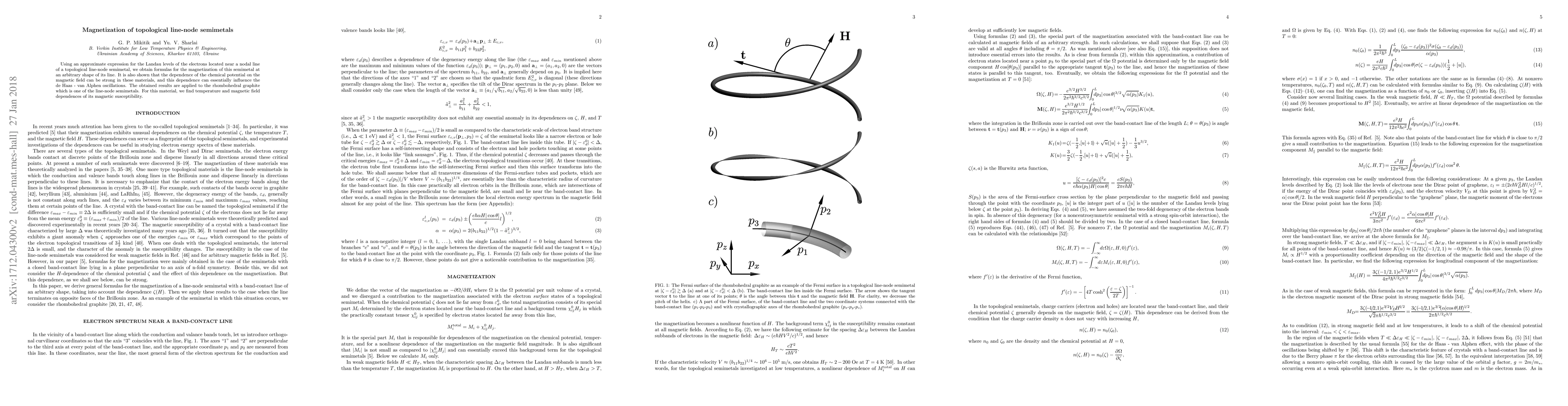 Using an approximate expression for the Landau levels of the electrons located near a nodal line of a topological line-node semimetal, we obtain formulas for the magnetization of this semimetal at an arbitrary shape of its line. It is also shown that the dependence of the chemical potential on the magnetic field can be strong in these materials, and this dependence can essentially influence the de Haas - van Alphen oscillations. The obtained results are applied to the rhombohedral graphite which is one of the line-node semimetals. For this material, we find temperature and magnetic field dependences of its magnetic susceptibility.