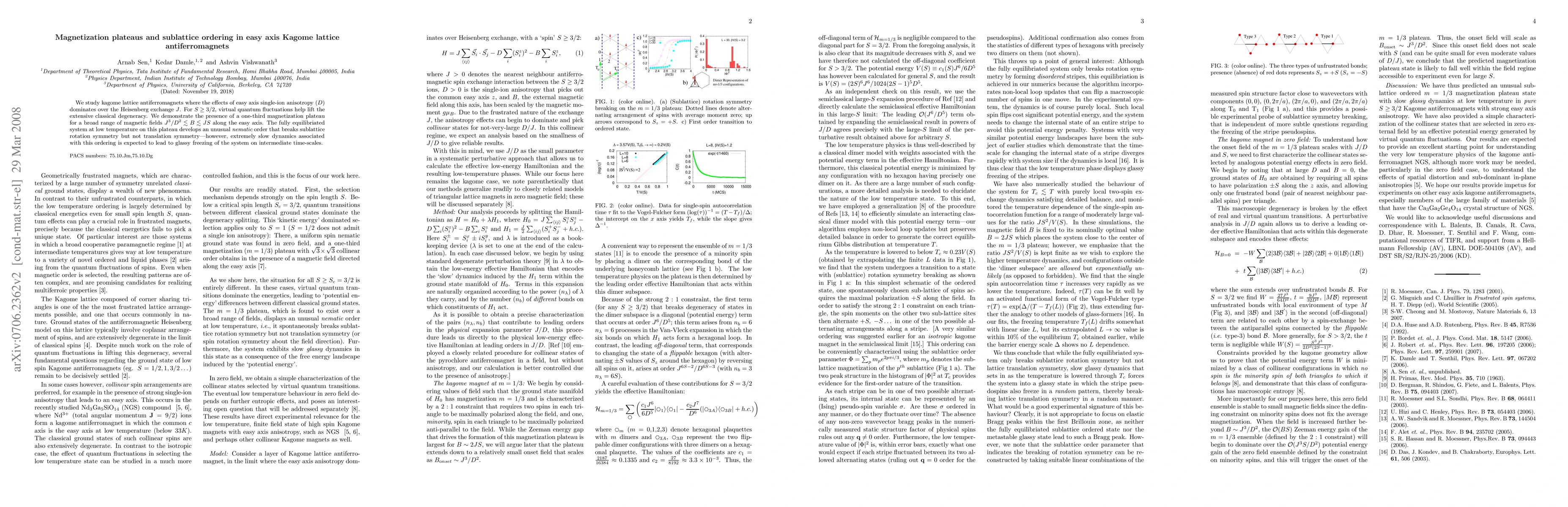 This paper investigates easy axis Kagome lattice antiferromagnets with dominant single-ion anisotropy, revealing a one-third magnetization plateau due to quantum fluctuations. The system exhibits nematic order on the plateau, breaking sublattice rotation symmetry, and is expected to freeze into a glassy state due to slow dynamics.