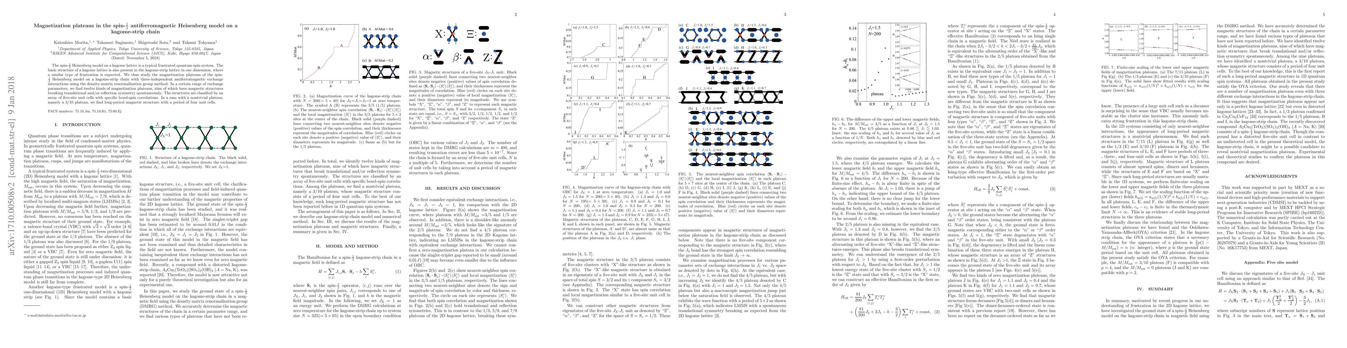 The paper presents a detailed analysis of magnetization plateaus in a spin-1/2 Heisenberg model on a kagome-strip chain using the DMRG method, identifying previously unreported plateau types and long-period magnetic structures.