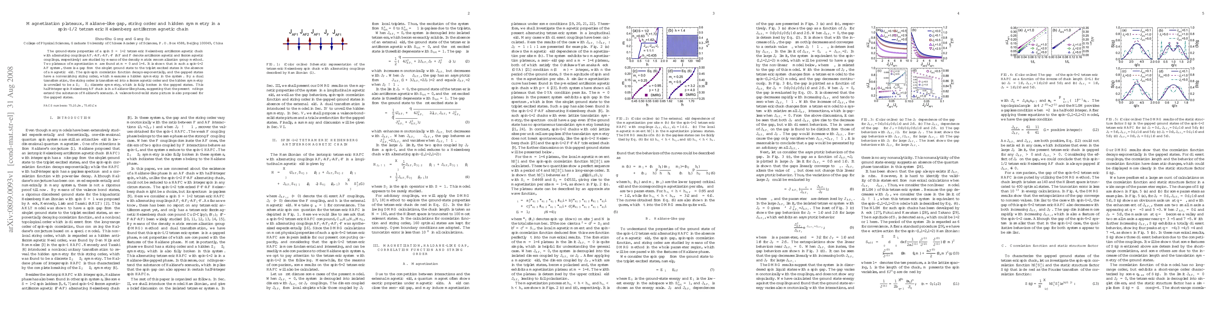 The ground-state properties of a spin $S=1/2$ tetrameric Heisenberg antiferromagnetic chain with alternating couplings AF$_{1}$-AF$_{2}$-AF$_{1}$% -F (AF and F denote antiferromagnetic and ferromagnetic couplings, respectively) are studied by means of the density matrix renormalization group method. Two plateaux of magnetization $m$ are found at $m=0$ and 1/4% . It is shown that in such a spin-1/2 AF system, there is a gap from the singlet ground state to the triplet excited states in the absence of a magnetic field. The spin-spin correlation function decays exponentially, and the gapped states have a nonvanishing string order, which measures a hidden symmetry in the system. By a dual transformation, the string order is transformed into a ferromagnetic order and the hidden symmetry is unveiled to be a $Z_{2}\times Z_{2}$ discrete symmetry, which is fully broken in the gapped states. This half-integer spin Heisenberg AF chain is in a Haldane-like phase, suggesting that the present findings extend the substance of Haldane's scenario. A valence-bond-solid state picture is also proposed for the gapped states.