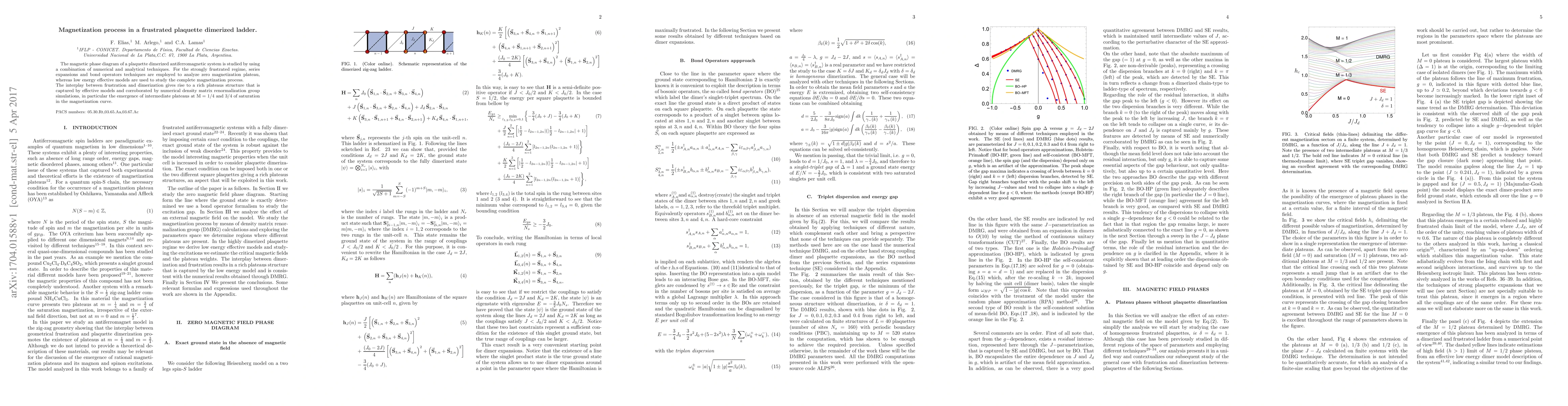 This paper investigates the magnetic phase diagram of a frustrated plaquette dimerized ladder using numerical and analytical techniques, revealing a rich plateau structure including intermediate plateaus at M = 1/4 and 3/4 due to the interplay of frustration and dimerization, corroborated by density matrix renormalization group simulations.