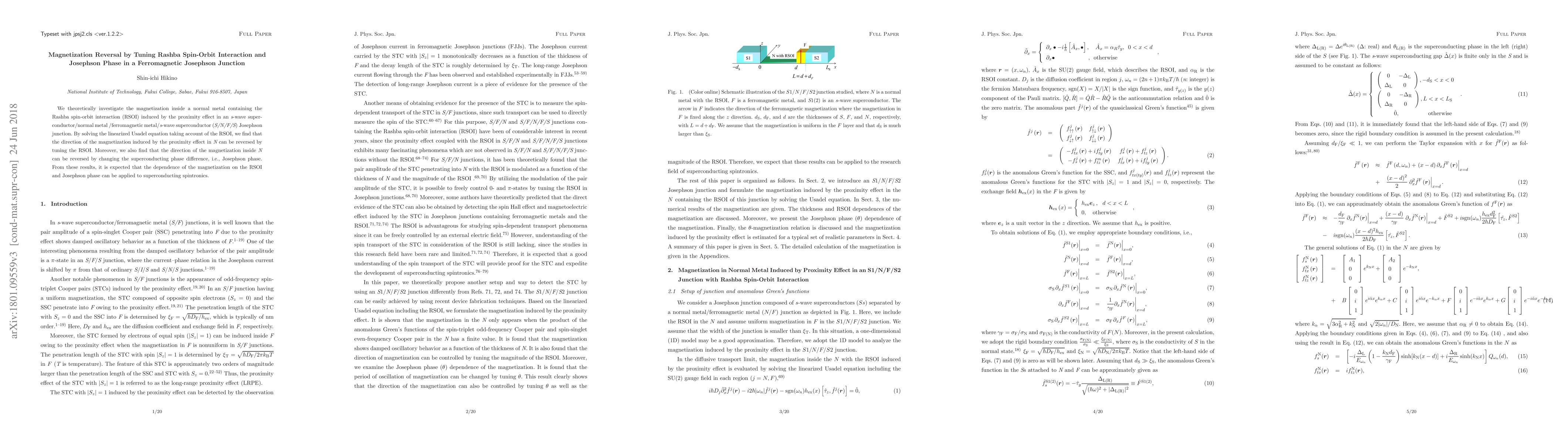 This paper investigates how magnetization in a normal metal within a Josephson junction can be reversed by tuning the Rashba spin-orbit interaction and the Josephson phase, revealing potential applications for superconducting spintronics. The study uses the linearized Usadel equation to demonstrate these effects.