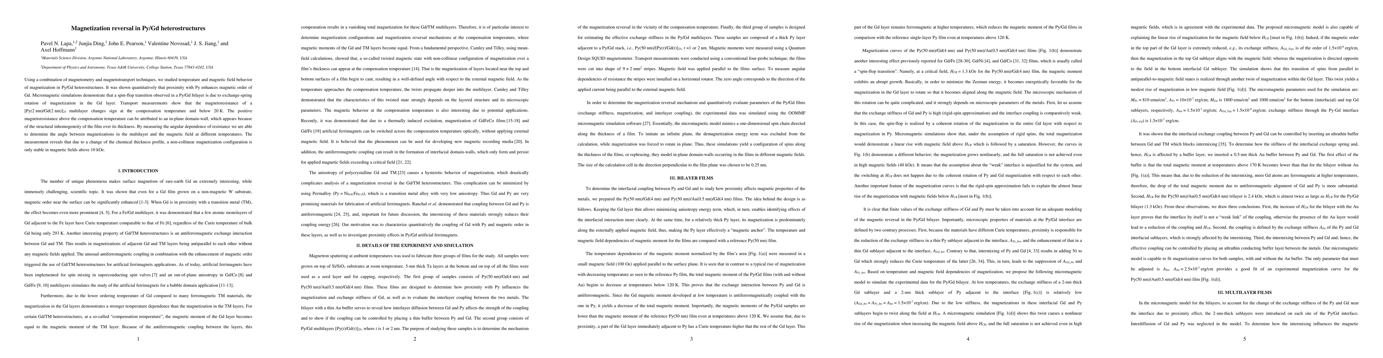 This study investigates the magnetization reversal in Py/Gd heterostructures using magnetometry and magnetotransport techniques, revealing that Py proximity enhances Gd's magnetic order. Micromagnetic simulations attribute the observed spin-flop transition to exchange-spring rotation in the Gd layer, while transport measurements show a sign change in magnetoresistance at the compensation temperature.