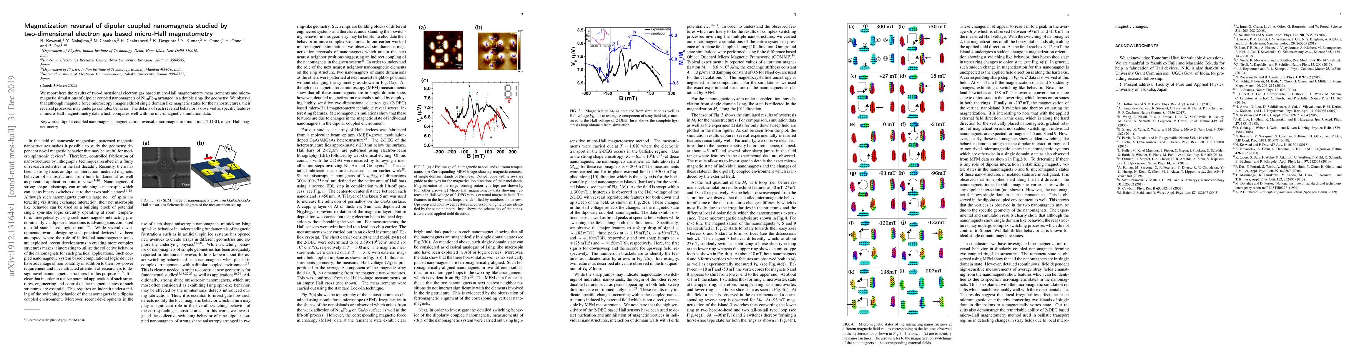 We report here the results of two-dimensional electron gas based micro-Hall magnetometry measurements and micromagnetic simulations of dipolar coupled nanomagnets of Ni80Fe20 arranged in a double ring-like geometry. We observe that although magnetic force microscopy images exhibit single domain like magnetic states for the nanostructures, their reversal processes may undergo complex behavior. The details of such reversal behavior is observed as specific features in micro-Hall magnetometry data which compares well with the micromagnetic simulation data.