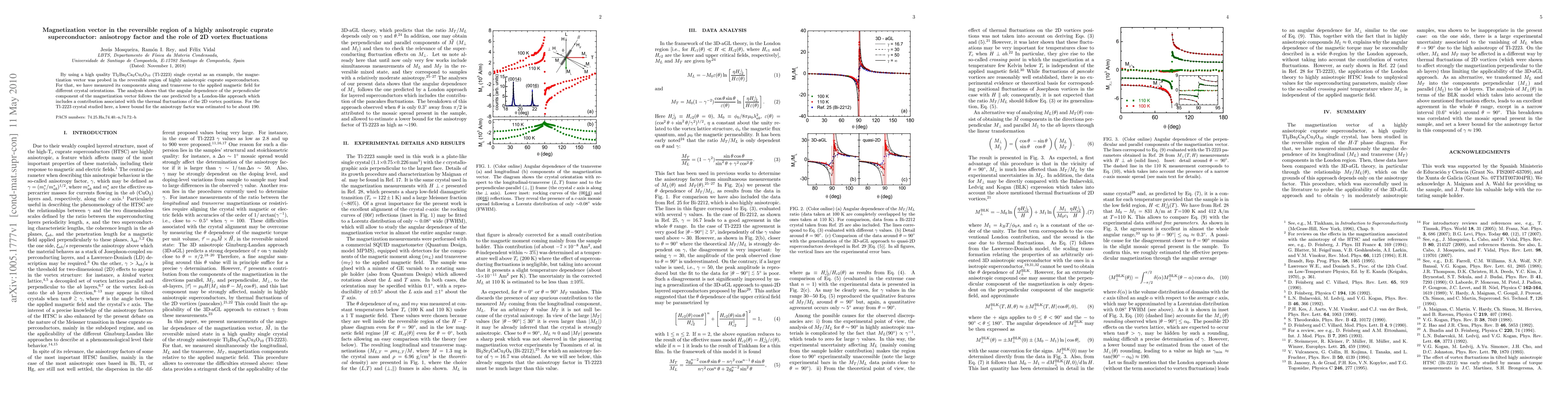 By using a high quality Tl2Ba2Ca2Cu3O10 (Tl-2223) single crystal as an example, the magnetization vector was probed in the reversible region of highly anisotropic cuprate superconductors. For that, we have measured its components along and transverse to the applied magnetic field for different crystal orientations. The analysis shows that the angular dependence of the perpendicular component of the magnetization vector follows the one predicted by a London-like approach which includes a contribution associated with the thermal fluctuations of the 2D vortex positions. For the Tl-2223 crystal studied here, a lower bound for the anisotropy factor was estimated to be about 190.