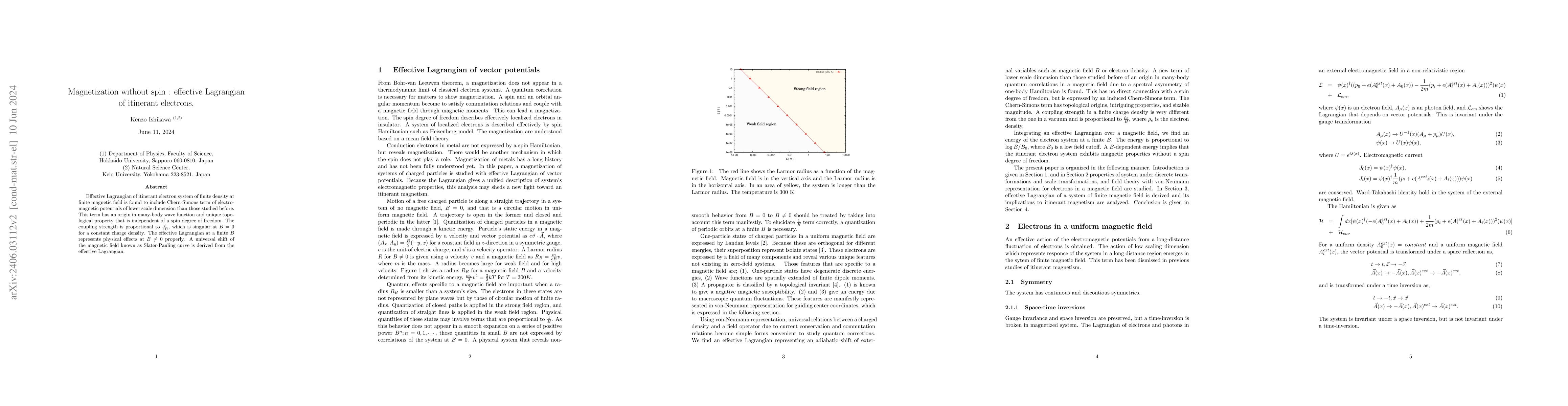The research paper discovers an effective Lagrangian for itinerant electrons containing a Chern-Simons term, independent of spin, arising from the many-body wave function, and highlights its topological properties. The magnetic field's universal shift, known as the Slater-Pauling curve, is derived from this Lagrangian.