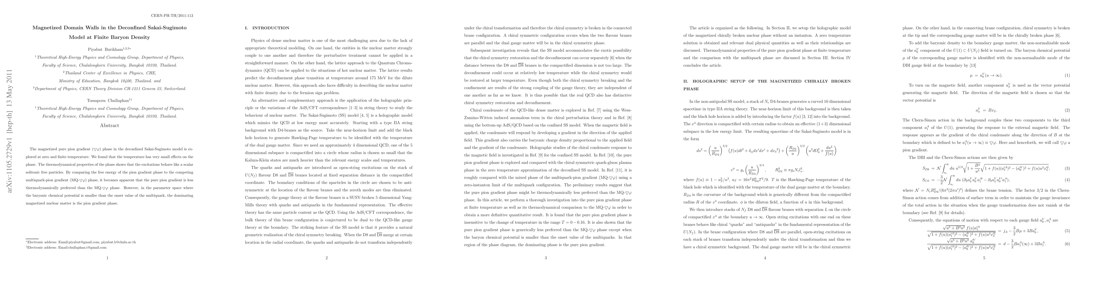 The magnetized pure pion gradient ($\mathcal{5}\phi$) phase in the deconfined Sakai-Sugimoto model is explored at zero and finite temperature. We found that the temperature has very small effects on the phase. The thermodynamical properties of the phase shows that the excitations behave like a scalar solitonic free particles. By comparing the free energy of the pion gradient phase to the competing multiquark-pion gradient (MQ-$\mathcal{5}\phi$) phase, it becomes apparent that the pure pion gradient is less thermodynamically preferred than the MQ-$\mathcal{5}\phi$ phase. However, in the parameter space where the baryonic chemical potential is smaller than the onset value of the multiquark, the dominating magnetized nuclear matter is the pion gradient phase.