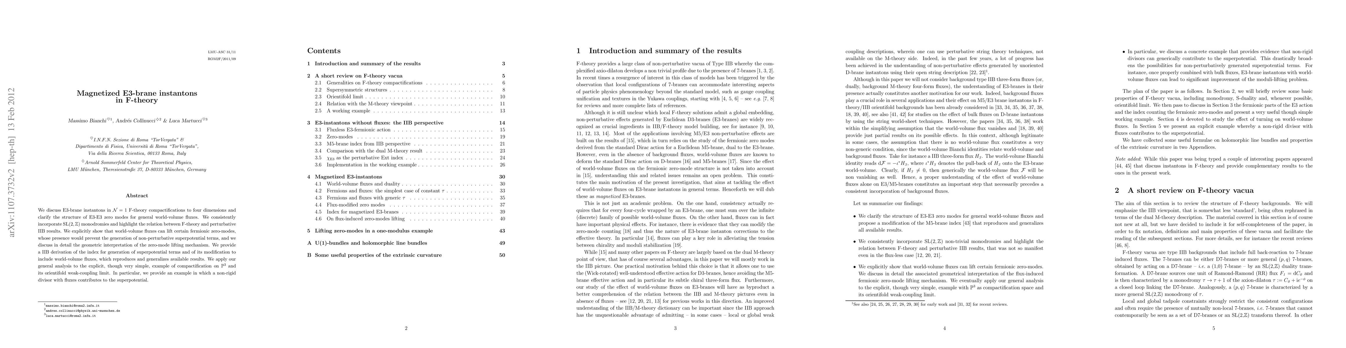 This paper explores E3-brane instantons in F-theory compactifications, focusing on the lifting of fermionic zero-modes by world-volume fluxes and their impact on generating non-perturbative superpotential terms. It provides a detailed geometric interpretation and a perturbative IIB derivation of the index for these terms.