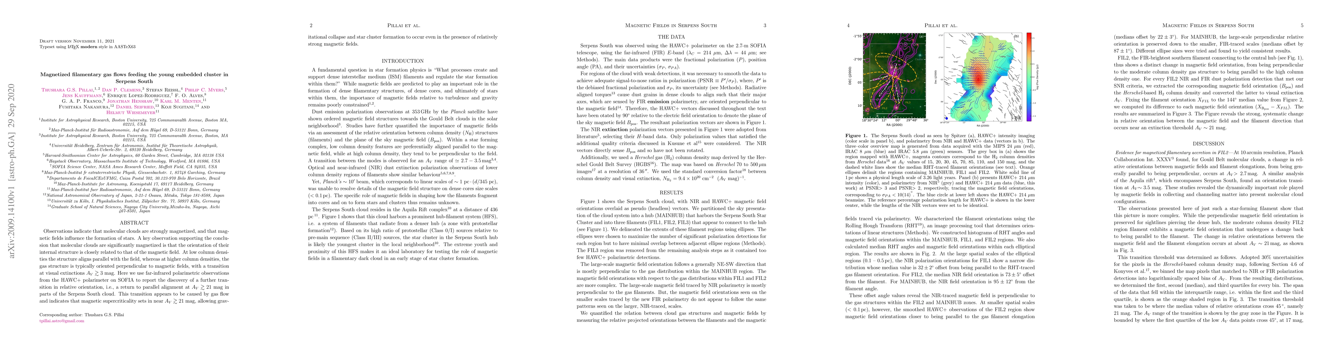 Observations indicate that molecular clouds are strongly magnetized, and that magnetic fields influence the formation of stars. A key observation supporting the conclusion that molecular clouds are significantly magnetized is that the orientation of their internal structure is closely related to that of the magnetic field. At low column densities the structure aligns parallel with the field, whereas at higher column densities, the gas structure is typically oriented perpendicular to magnetic fields, with a transition at visual extinctions $A_V\gtrsim{}3~\rm{}mag$. Here we use far-infrared polarimetric observations from the HAWC+ polarimeter on SOFIA to report the discovery of a further transition in relative orientation, i.e., a return to parallel alignment at $A_V\gtrsim{}21~\rm{}mag$ in parts of the Serpens South cloud. This transition appears to be caused by gas flow and indicates that magnetic supercriticality sets in near $A_V\gtrsim{}21~\rm{}mag$, allowing gravitational collapse and star cluster formation to occur even in the presence of relatively strong magnetic fields.
