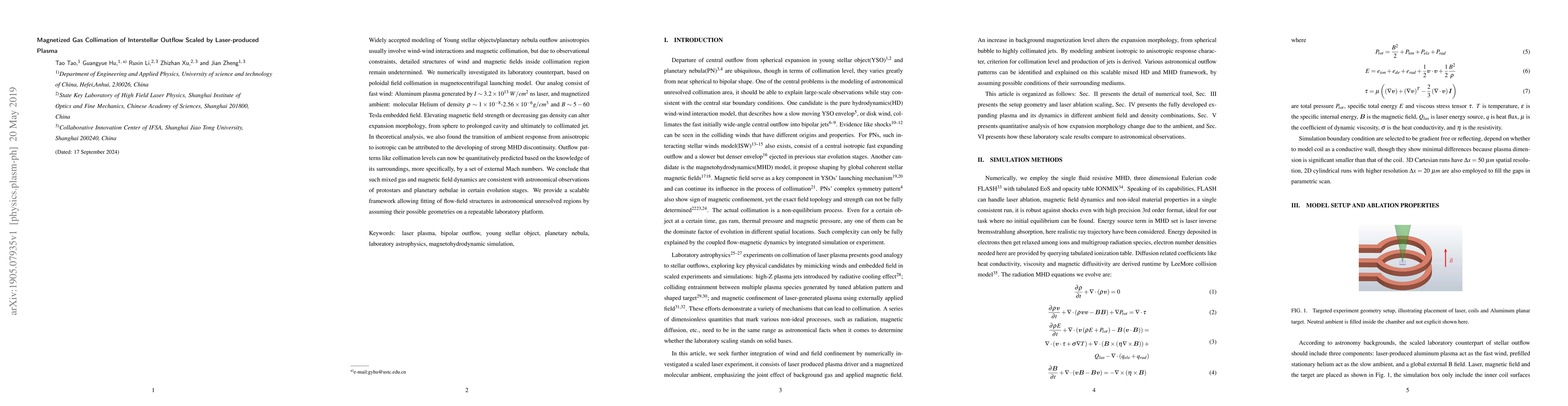 This study uses laser-produced plasma to simulate interstellar outflows, finding that adjusting magnetic field strength and gas density can transform outflow shapes from spheres to jets. The research offers a scalable lab framework to understand and predict astronomical observations of protostars and planetary nebulae.