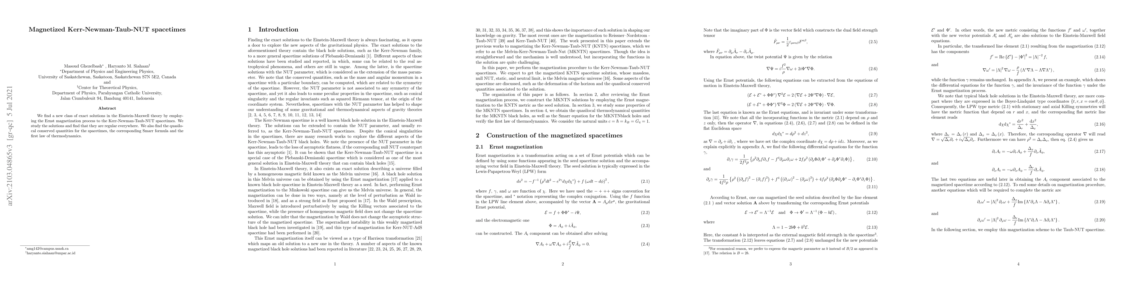 This paper presents a new class of exact solutions in the Einstein-Maxwell theory through the Ernst magnetization process applied to Kerr-Newman-Taub-NUT spacetimes, demonstrating their global regularity. It also derives quasilocal conserved quantities, the Smarr formula, and the first law of thermodynamics for these solutions.