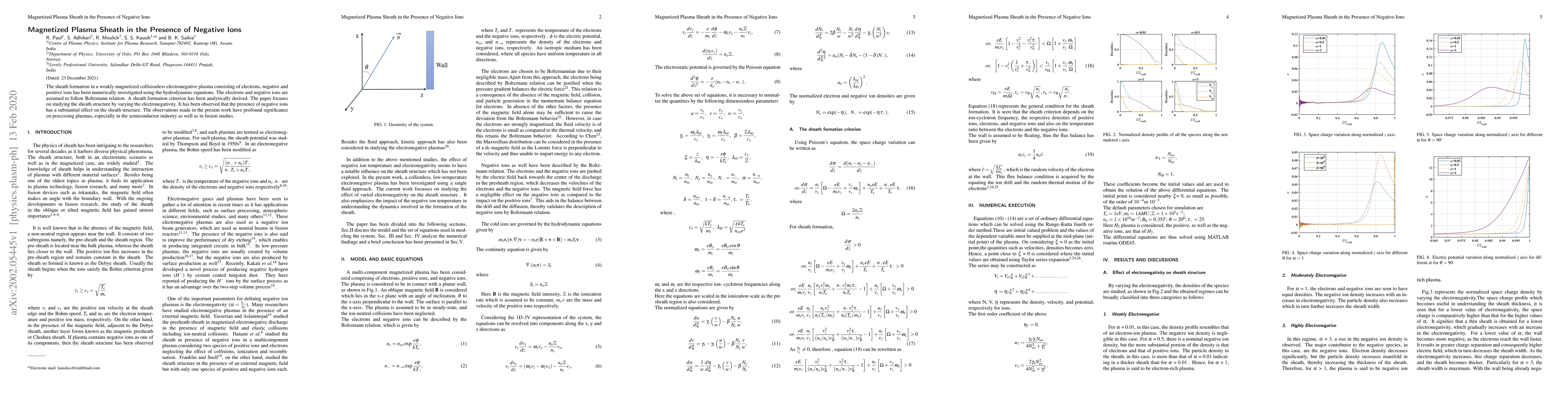 The sheath formation in a weakly magnetized collisionless electronegative plasma consisting of electrons, negative and positive ions has been numerically investigated using the hydrodynamic equations. The electrons and negative ions are assumed to follow Boltzmann relation. A sheath formation criterion has been analytically derived. The paper focuses on studying the sheath structure by varying the electronegativity. It has been observed that the presence of negative ions has a substantial effect on the sheath structure. The observations made in the present work have profound significance on processing plasmas, especially in the semiconductor industry as well as in fusion studies.