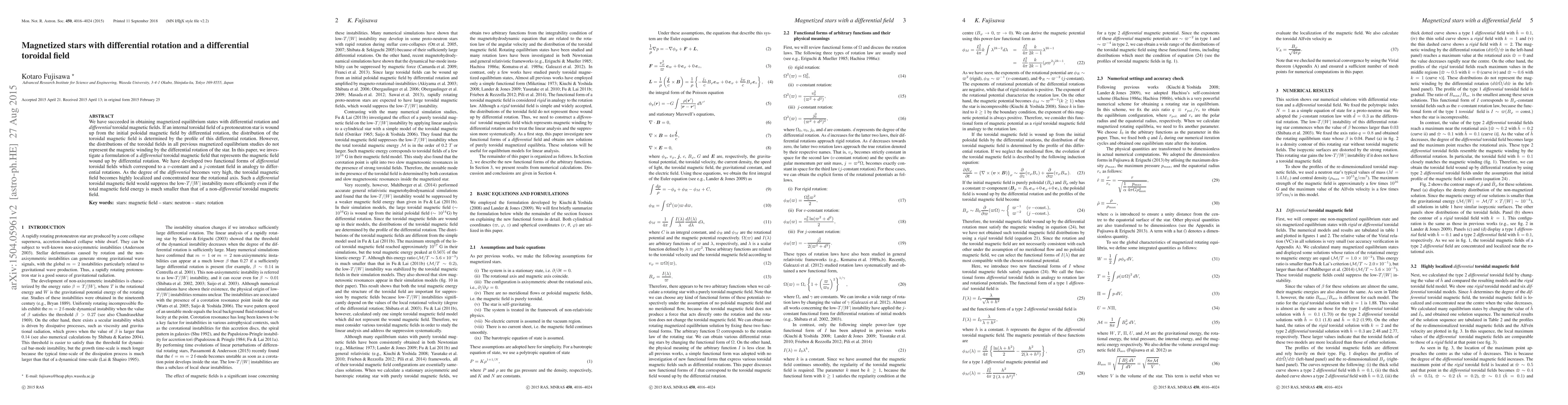 This paper investigates magnetized equilibrium states in stars with differential rotation and differential toroidal magnetic fields, proposing new functional forms that accurately represent magnetic winding by differential rotation. High differential rotation results in highly localized toroidal magnetic fields near the rotational axis, which can more effectively suppress instabilities.