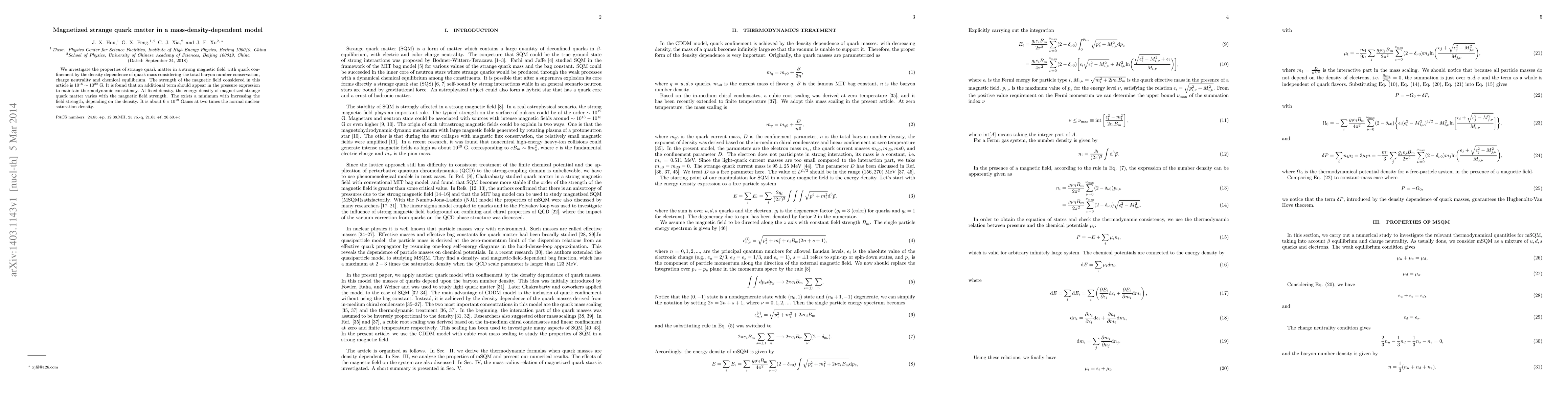 This paper explores the properties of strange quark matter under strong magnetic fields, incorporating quark mass dependence on density. It finds that a new term is needed in the pressure expression to maintain thermodynamic consistency, and the energy density of magnetized strange quark matter exhibits a minimum value with increasing magnetic field strength, around $6\times10^{19}$ Gauss at double nuclear saturation density.