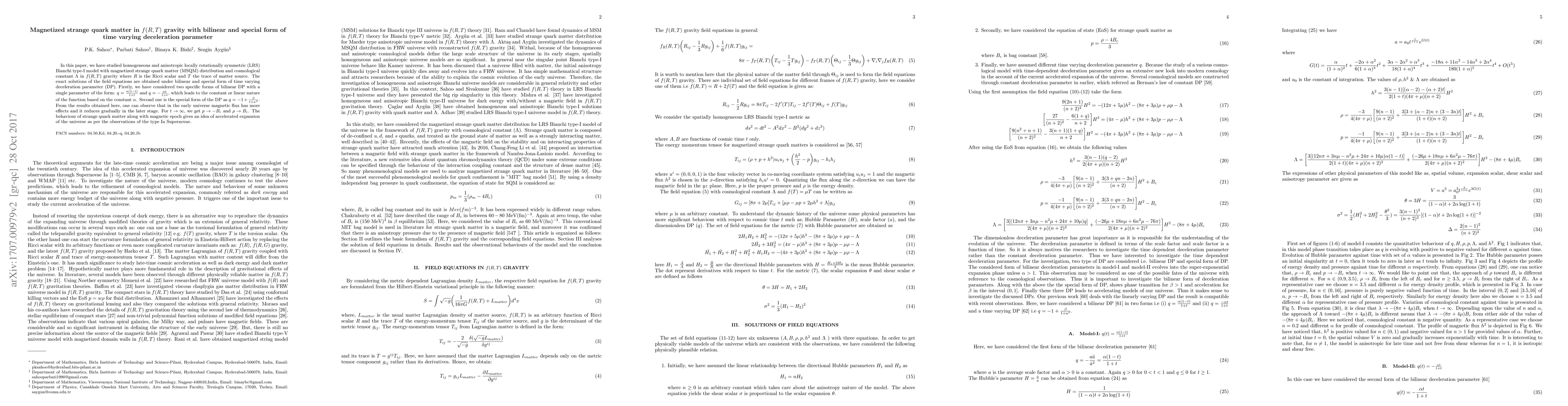 In this paper, we have studied homogeneous and anisotropic, locally rotationally symmetric (LRS) Bianchi type-I universe model with magnetized strange quark matter (MSQM) distribution and cosmological constant $\Lambda$ in $f(R,T)$ gravity. The exact solutions of the field equations are obtained under bilinear and special form of time varying deceleration parameter (DP). Firstly we have considered two specific form of bilinear DP with a single parameter of the form: $q=\frac{\alpha(1-t)}{1+t}$ and $q=-\frac{\alpha t}{1+t}$, which leads to a function with constant or linear nature with respect to the choice of constant $\alpha$. Second one is the special form of the DP as $q=-1+\frac{\beta}{1+a^{\beta}}$. From obtained results, we could say that in the early universe the magnetic flux has more effects and it gradually reducing its effects in later. For $t\rightarrow \infty$, we get $p\rightarrow -B_c$ and $\rho\rightarrow B_c$. So the strange quark matter along with magnetic epoch gives an idea of accelerated expansion of the universe as per the observations of the type Ia Supernovae.