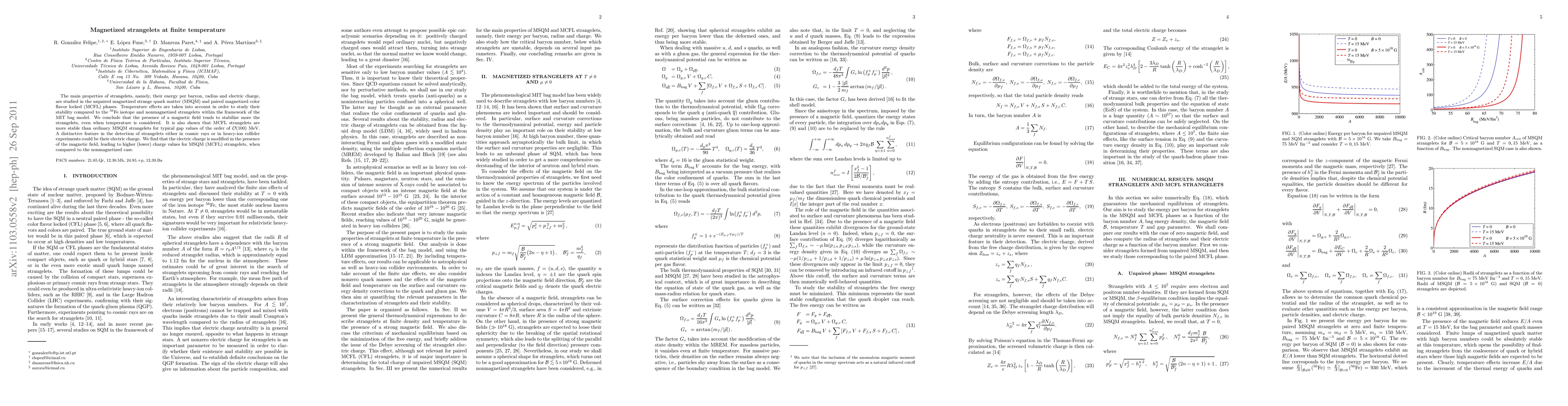 The main properties of magnetized strangelets, namely, their energy per baryon, radius and electric charge, are studied. Temperature effects are also taken into account in order to study their stability compared to the 56Fe isotope and non-magnetized strangelets using the liquid drop model. Massive quarks are considered with the aim to have a more realistic description for strangelets in the astrophysical context and the environment of heavy ion colliders, playing also an important role in the thermodynamical quantities of the quark gas. It is concluded that the presence of a magnetic field tends to stabilize more the strangelets, even when temperature effects are taken into account. Magnetized strangelets in a paired superconductor phase (magnetized color flavor locked phase) are also discussed. It is shown that they are more stable than ordinary magnetized strangelets for typical gap values of the order of O(100) MeV.