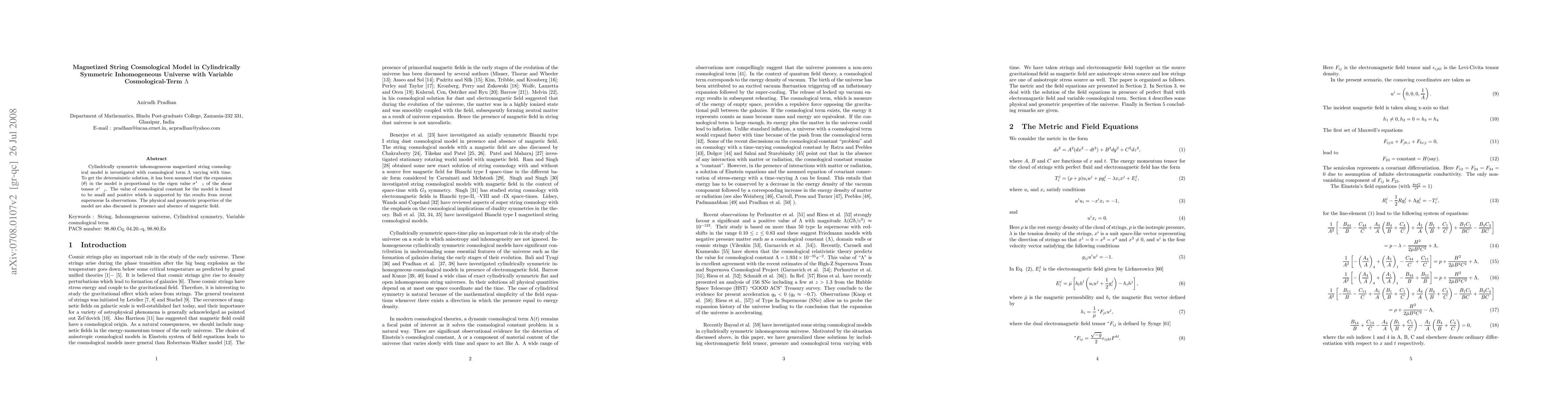 This paper explores a magnetized string cosmological model in a cylindrically symmetric, inhomogeneous universe with a time-varying cosmological term $\Lambda$. The model's expansion is linked to the shear tensor's eigenvalue, yielding a small, positive cosmological constant consistent with recent supernovae Ia observations. The study also discusses the physical and geometric properties with and without a magnetic field.