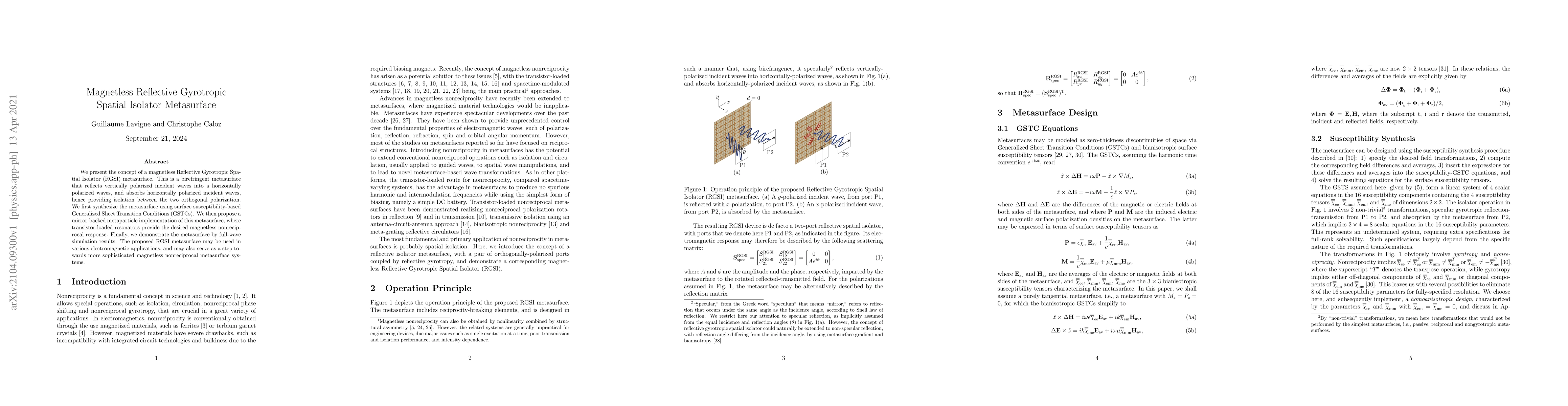 Christophe Caloz, Guillaume Lavigne, Toshiro Kodera