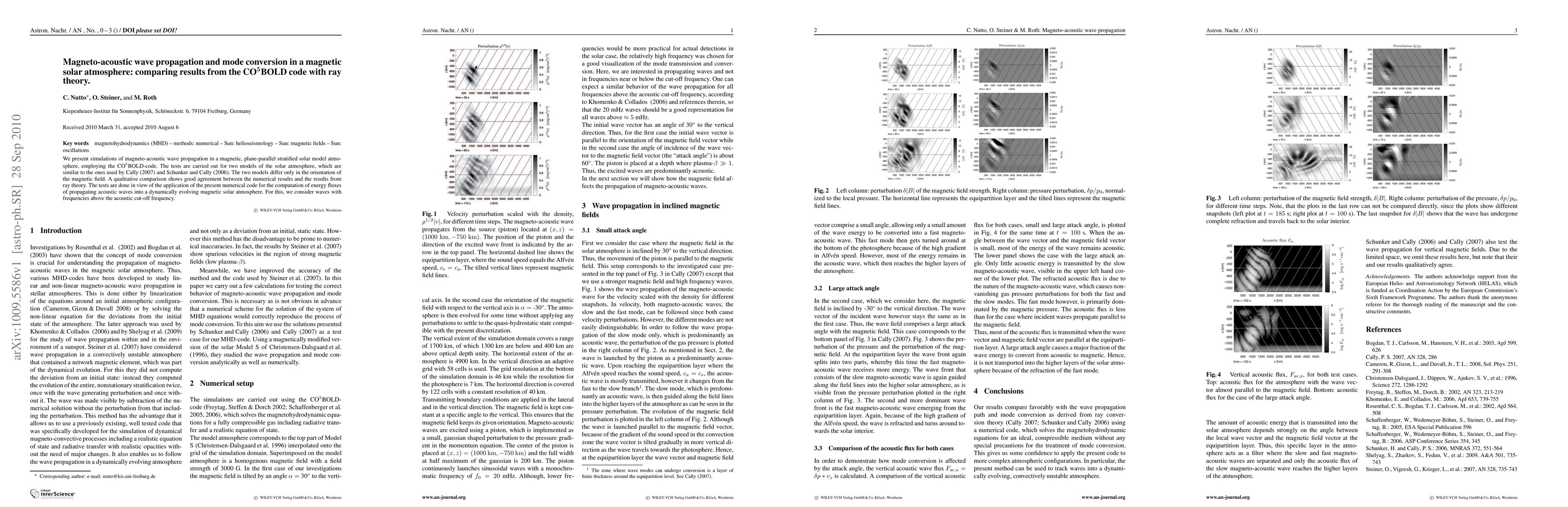 This paper uses the CO5BOLD code to simulate magneto-acoustic wave propagation in a magnetic solar atmosphere, comparing results with ray theory. It finds good agreement between numerical simulations and ray theory, aiming to compute energy fluxes of acoustic waves in a dynamically evolving magnetic solar atmosphere.
