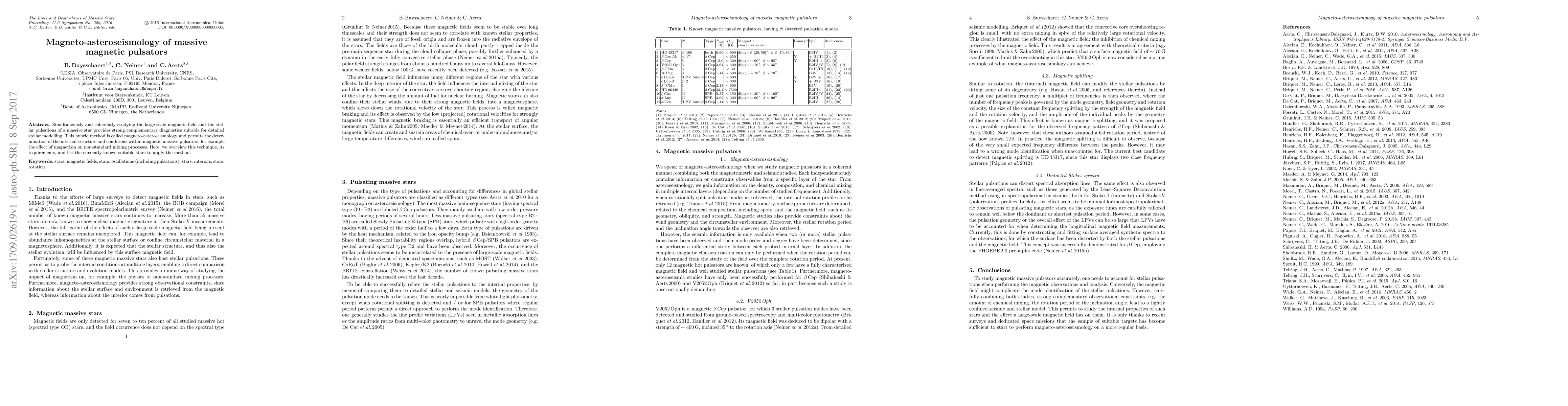 Simultaneously and coherently studying the large-scale magnetic field and the stellar pulsations of a massive star provides strong complementary diagnostics suitable for detailed stellar modelling. This hybrid method is called magneto-asteroseismology and permits the determination of the internal structure and conditions within magnetic massive pulsators, for example the effect of magnetism on non-standard mixing processes. Here, we overview this technique, its requirements, and list the currently known suitable stars to apply the method.