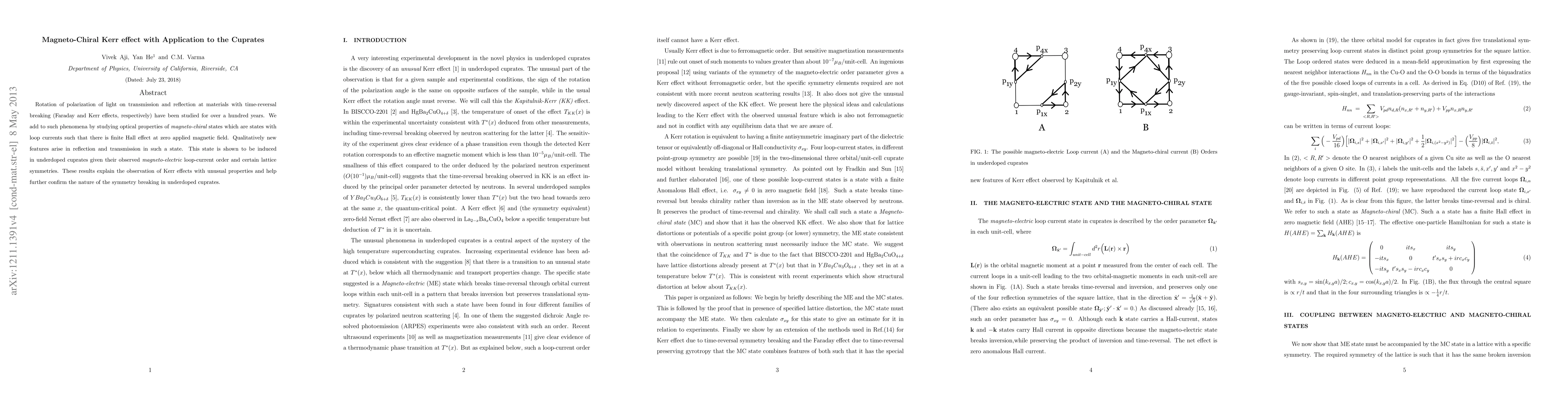 Rotation of polarization of light on transmission and reflection at materials with time-reversal breaking (Faraday and Kerr effects, respectively) have been studied for over a hundred years. We add to such phenomena by studying optical properties of magneto-chiral states which are loop currents with topological Hall effect. These break time-reversal and are chiral but the product of chirality and time-reversal is preserved. Qualitatively new features arise in reflection and transmission through such a state. This state is shown to be induced in underdoped cuprates given the observed magneto-electric loop-current order in cuprates and certain other specified condition. These results explain the observation of Kerr effects with unusual properties in the underdoped cuprates and help further confirm the nature of the symmetry breaking in underdoped cuprates.
