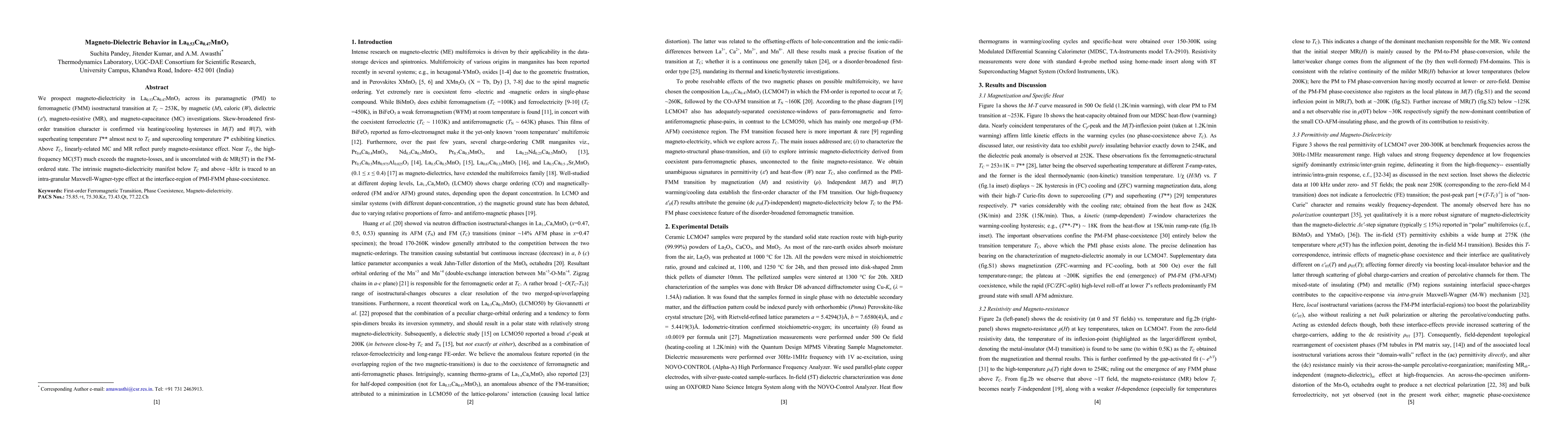 The paper presents a comprehensive analysis of magneto-dielectric behavior in La0.53Ca0.47MnO3, attributing the observed effects to intra-granular Maxwell-Wagner-type interfacial phenomena and disentangling high-frequency magneto-dielectricity from dc magneto-resistance.