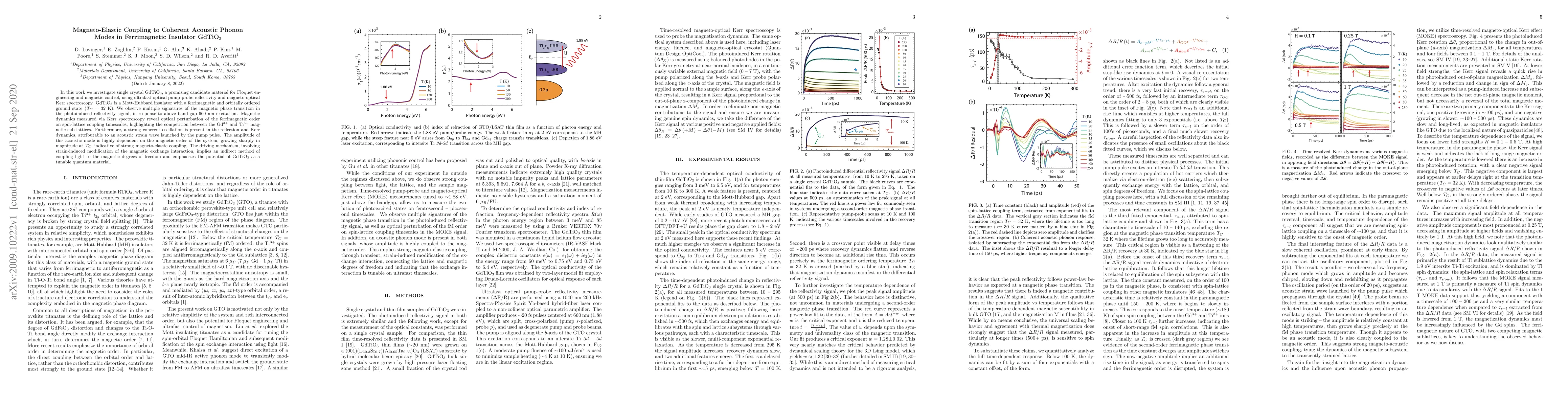 This study uses ultrafast optical techniques on ferrimagnetic insulator GdTiO3, revealing optical control over its magnetic order and strong magneto-elastic coupling. Acoustic strain waves, influenced by the material's magnetic state, suggest potential for light-based manipulation of magnetic properties in GdTiO3.