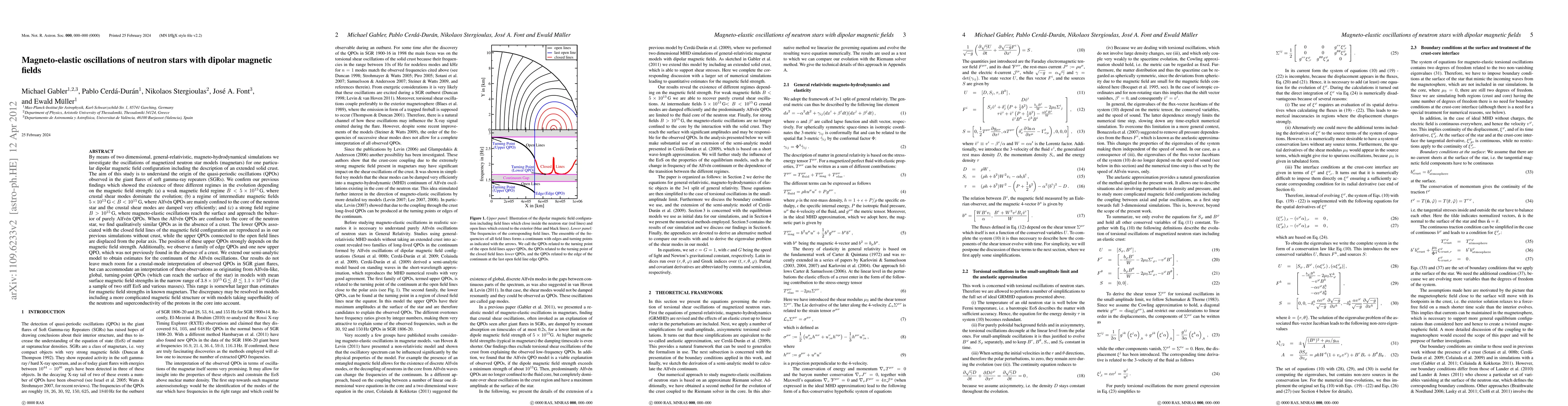 This study uses general-relativistic, magneto-hydrodynamical simulations to explore neutron star oscillations in dipolar magnetic fields. It identifies three regimes based on magnetic field strength and describes how Alfvén QPOs evolve in each, finding that strong fields (B>10^15 G) allow these oscillations to reach the surface. The research suggests that observed Quasi-Periodic Oscillations (QPOs) in Soft Gamma Repeaters (SGR) giant flares may be explained by Alfvén-like, global oscillations in neutron stars with dipolar magnetic fields between 5 x 10^15 G and 1.4 x 10^16 G, though this range is slightly higher than typical magnetar estimates, possibly due to magnetic field complexity or core superfluidity and superconductivity.